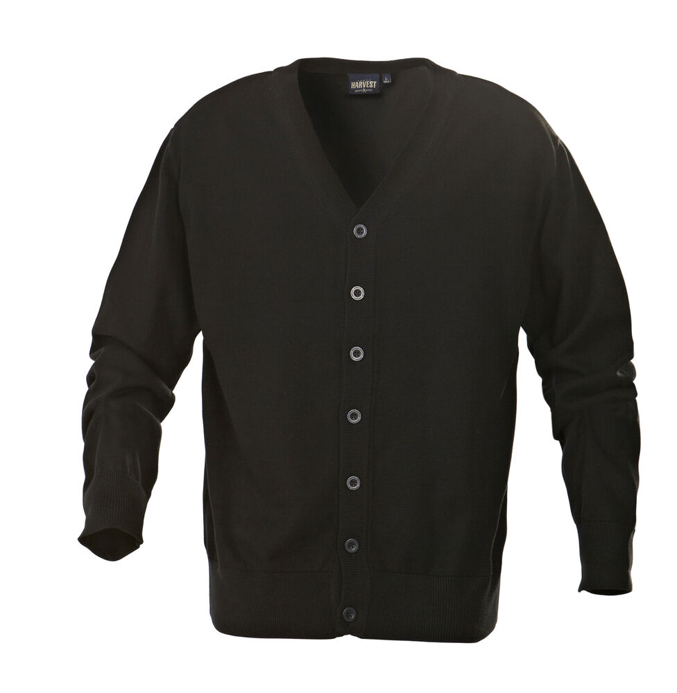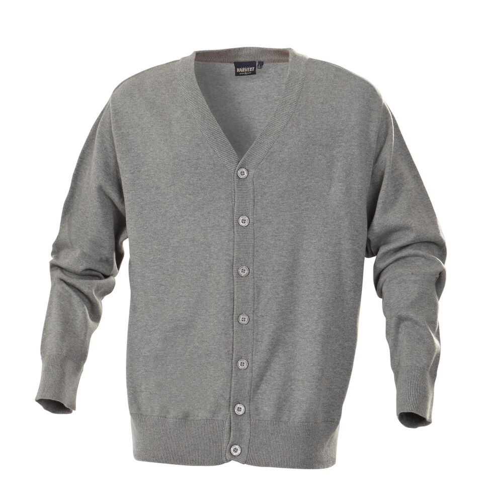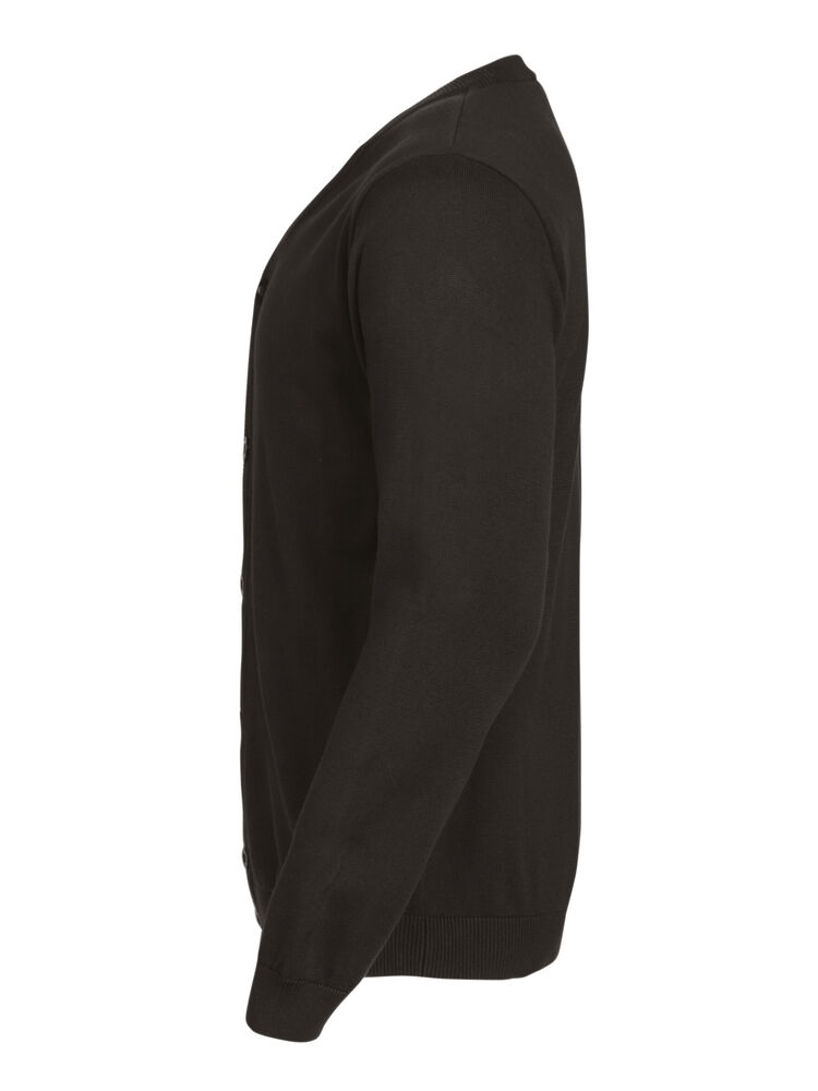 Cardigan for herre i myk bomullskvalitet. Elastisk ribb på ermer og i nederkant.