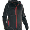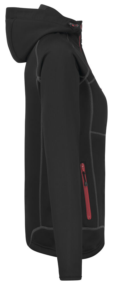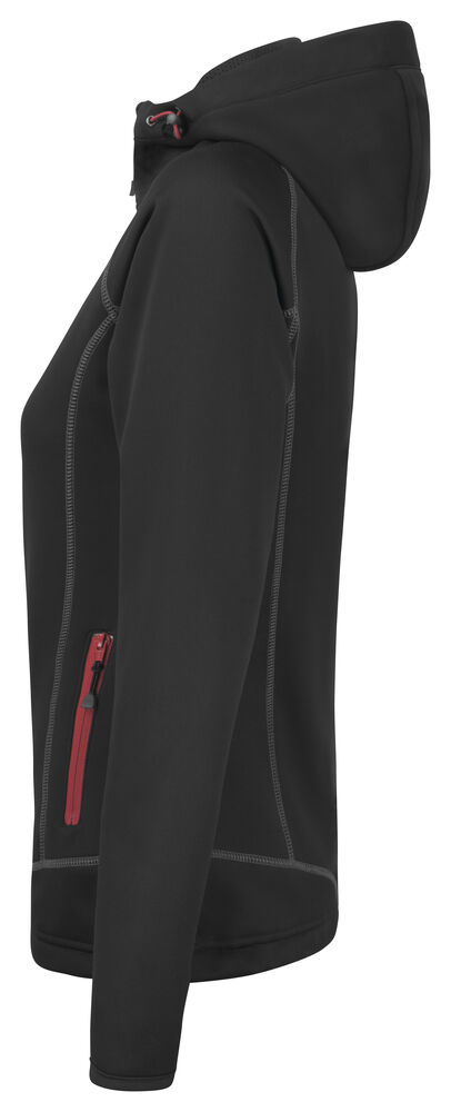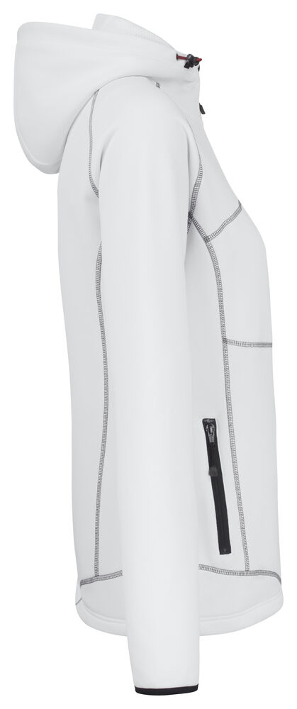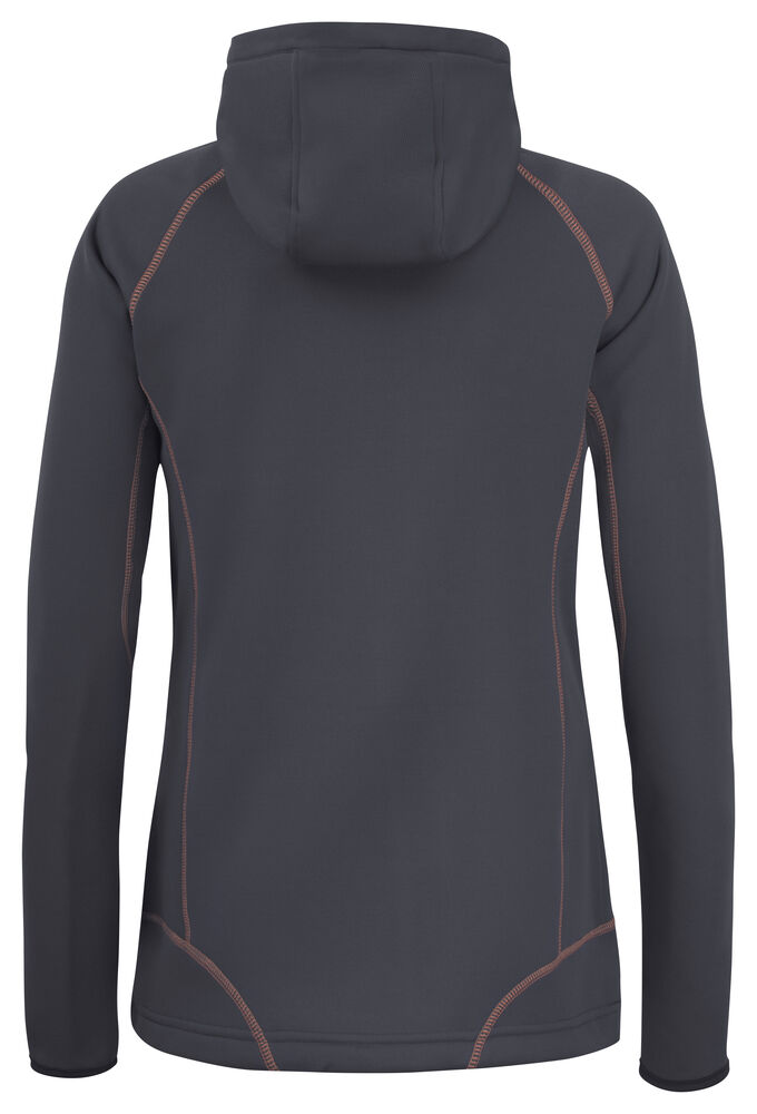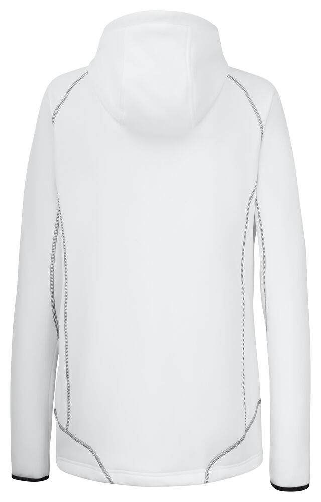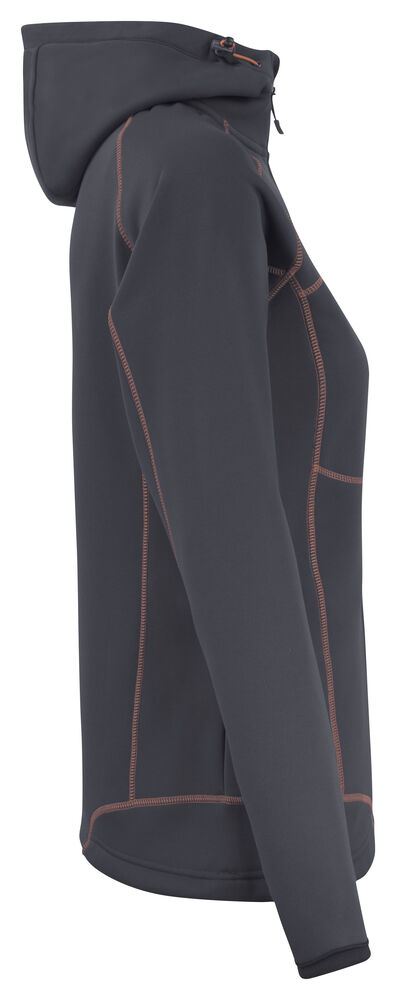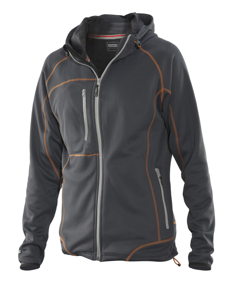Tøyelig polyester med fleeceinnside. Kroppsnær passform gir god bevegelsesfrihet. Regulerbar i hetten og nede med snor. Funksjonsmateriale. Glidelås foran med vindklaff. Regulerbar hette med meshfôr. Flatlocksømmer. Brystlomme med mobiltelefonlomme og glidelås. Sidelommer med glidelås. Store åpne innerlommer.
