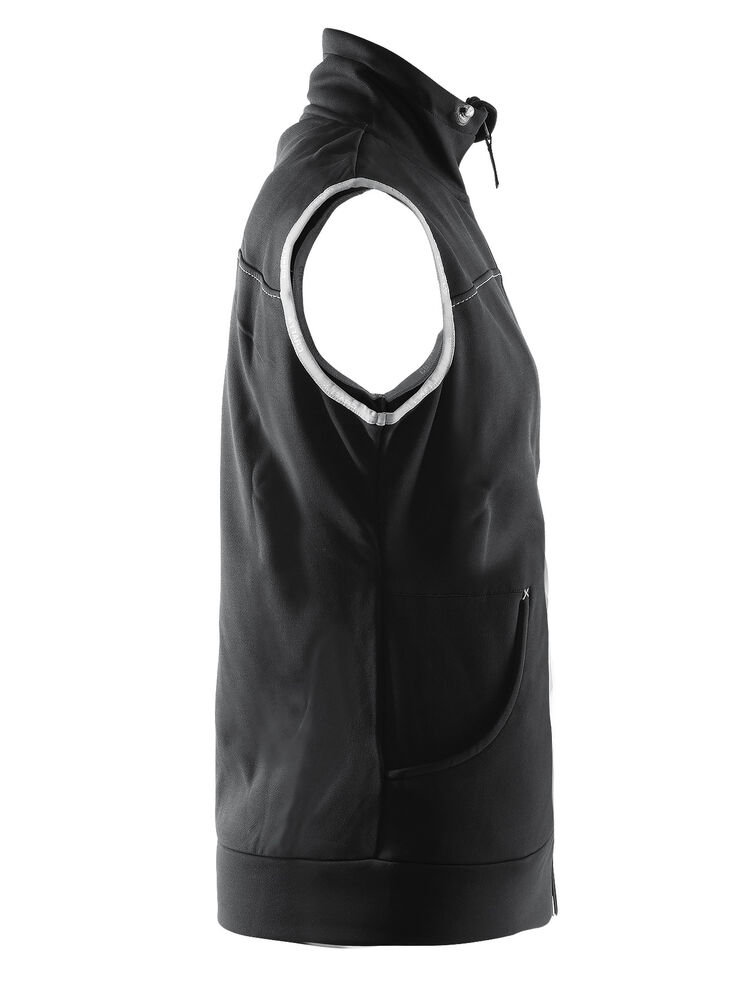 Komfortabel fritidsvest i myk, elastisk og funksjonell polyester. Krage med snor, to sidelommer.