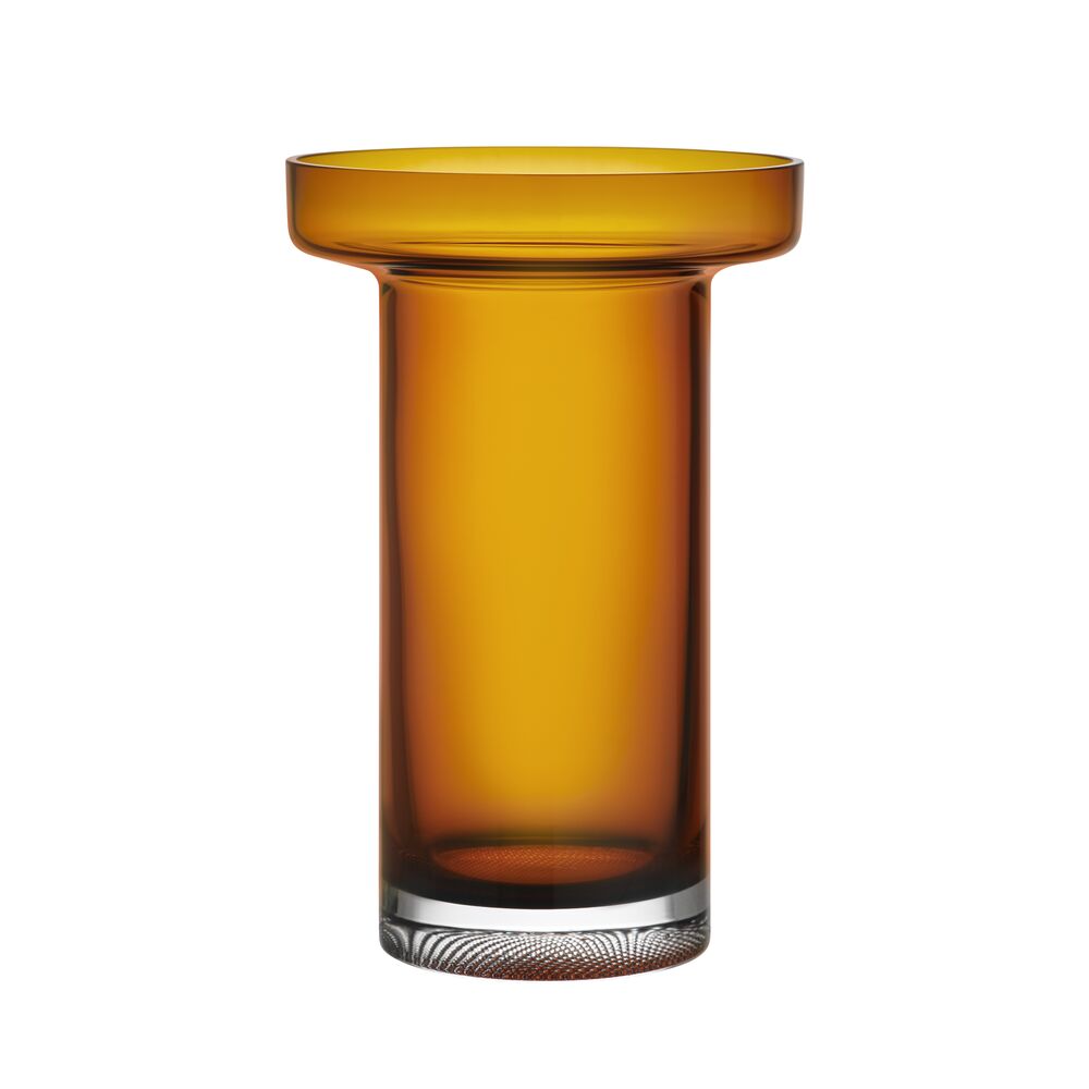 Limelight-serien fra Kosta Boda kjennetegnes av en solid base og et dekorativt og subtilt mønster med en lysspredende effekt som får delene til å skinne. Den ravfargede rosevasen har en bred krage som rammer inn og fremhever enhver bukett. Vasens høye form passer til litt lengre snittblomster. Design av Göran Wärff.