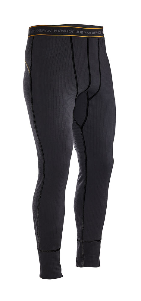 Longs i ribbestrikket gjenvunnet polyester. Midjebånd med stretch med Jobman-logo. Flatlocksømmer i kontrastfarge. Finnes som trøye med rund hals, modell 5570.