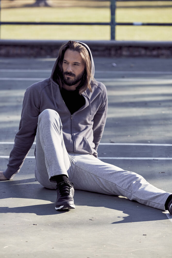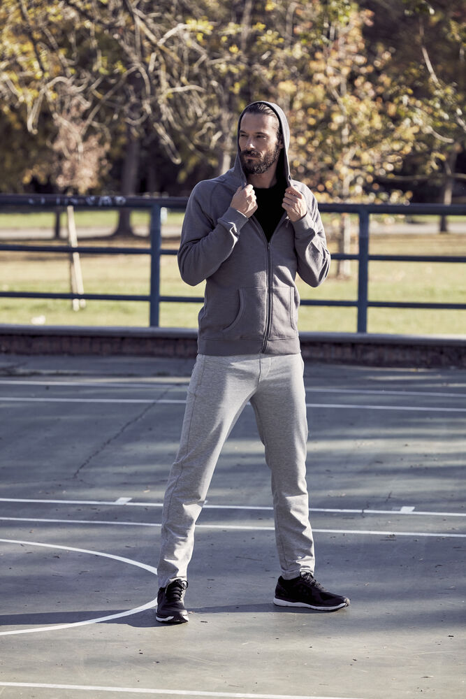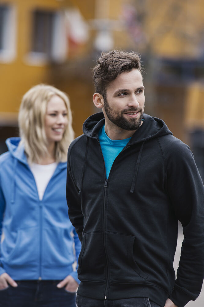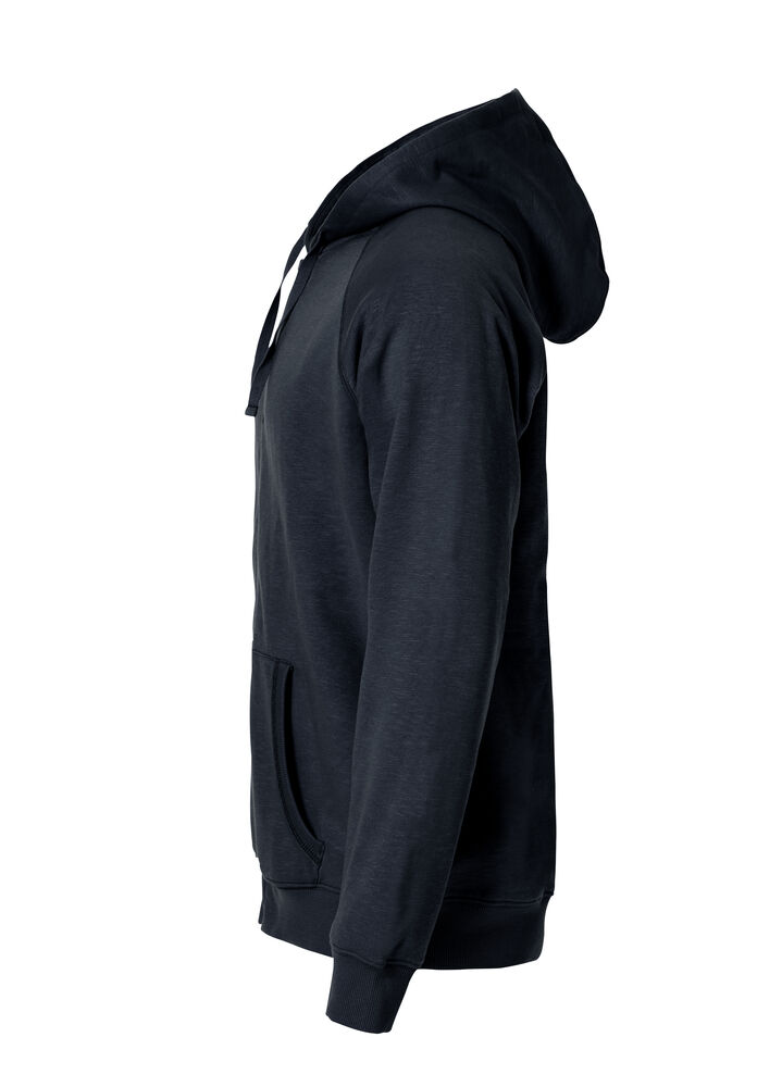Fullzip hettejakke. Slub bomull blandet med polyester skaper en fin melert effekt. Moderne stil med noe bredere mansjetter, raglanermer og dekorative flatlock-sømmer.