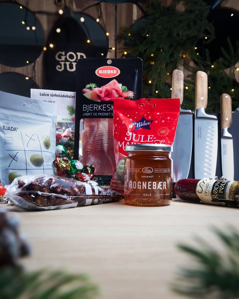 Luksuspakken er en gave som virkelig imponerer. Her kombineres utsøkte smaker med eleganse og kvalitet, fra søtt til salt og fra tradisjonelle delikatesser til moderne godsaker. Med et eksklusivt knivsett i resirkulert stål blir dette mer enn en smakfull opplevelse – det er en gave som varer, og som gjør inntrykk på både ganen og hjertet. Kommer pakket i "God Jul" striesekk i svart med tekst i gull.