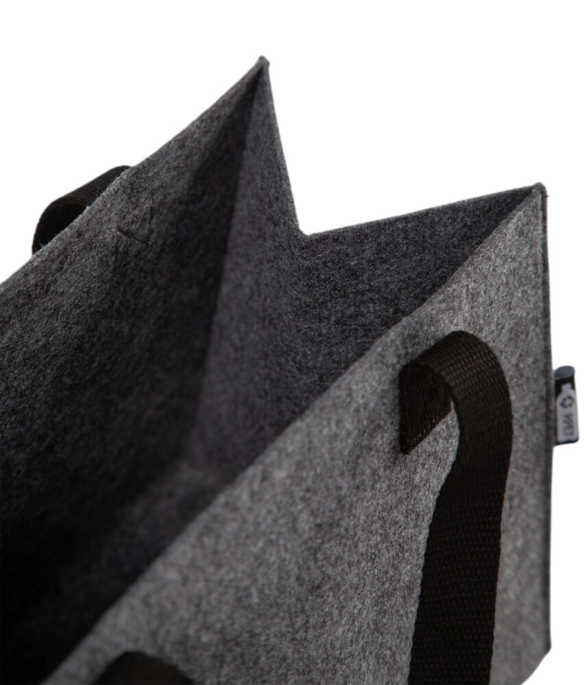 En lunsjveske gjør det enkelt å ha med seg matpakken. Laget av mykt filtstoff av 100 % R-PET. Vesken veier lite og er lett å håndtere. Rommer dagens matboks og enda litt til! Håndtakene gjør den lett å bære med seg, og etter bruk kan den enkelt brettes sammen.