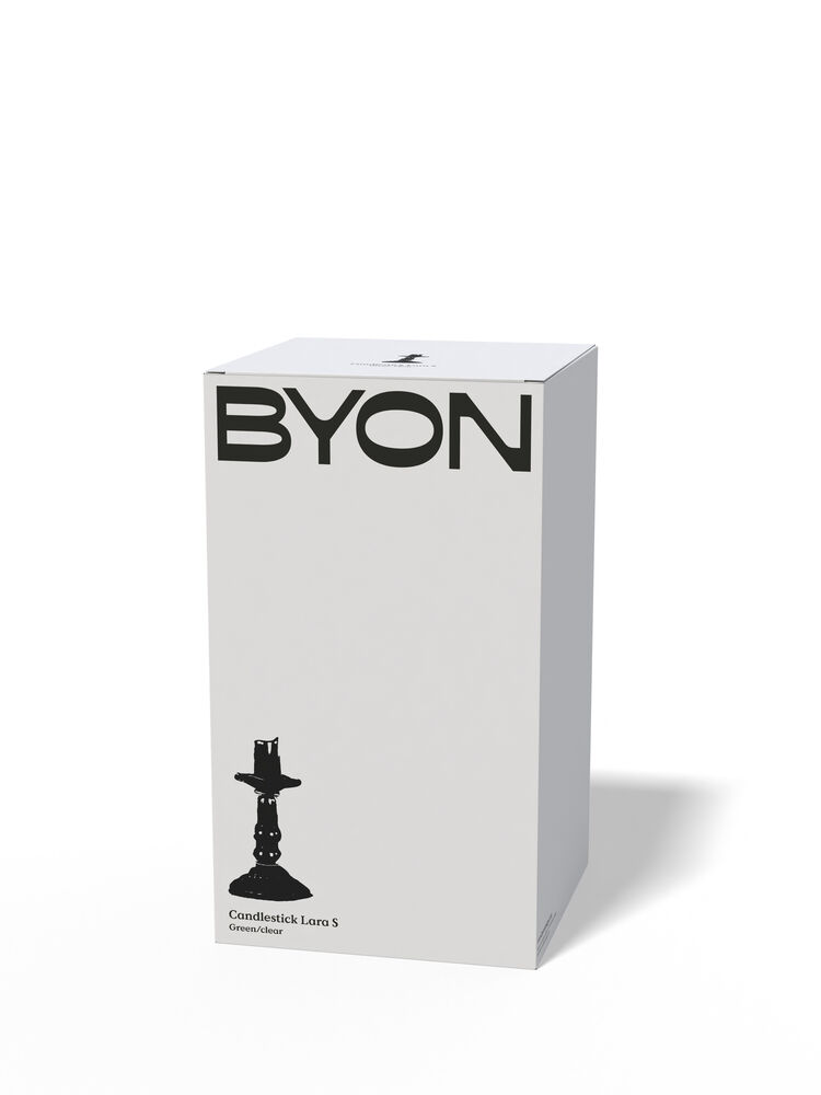 Ordene ekstravagante, pompøse og helt fantastiske beskriver lysestakene Lara i munnblåst glass helt perfekt. Ingen lysestake taler så godt for seg selv som Lara, som tar en selvskreven plass i ethvert hjem. Inspirert av søyler som pryder mange av de staselige italienske husene, med elegante og avrundede former, har Lara et tidløst design. Foten og toppen ligner en blomst og fanger stearinet som renner over lyset, som en innebygd mansjett. Finnes i forskjellige høyder og farger, og kan kombineres for maksimal effekt eller stå alene. Laget av glass som minner om klassisk glasskunst. Håndlaget. Farge- og strukturforskjeller kan forekomme. Design Byon Studio. Leveres i Byon-eske.