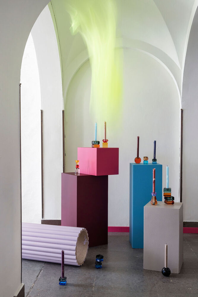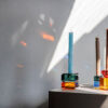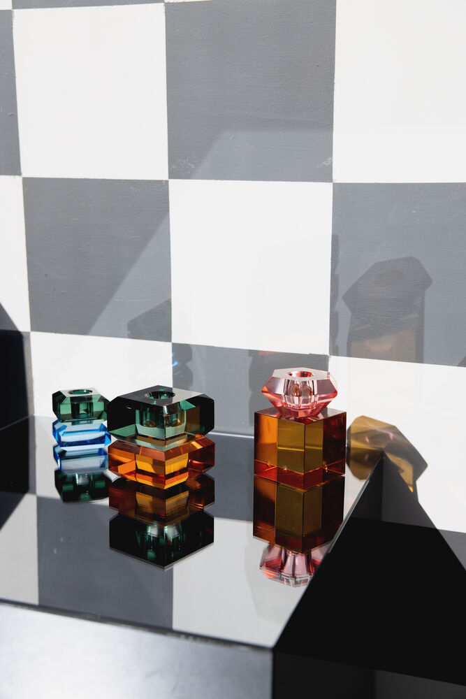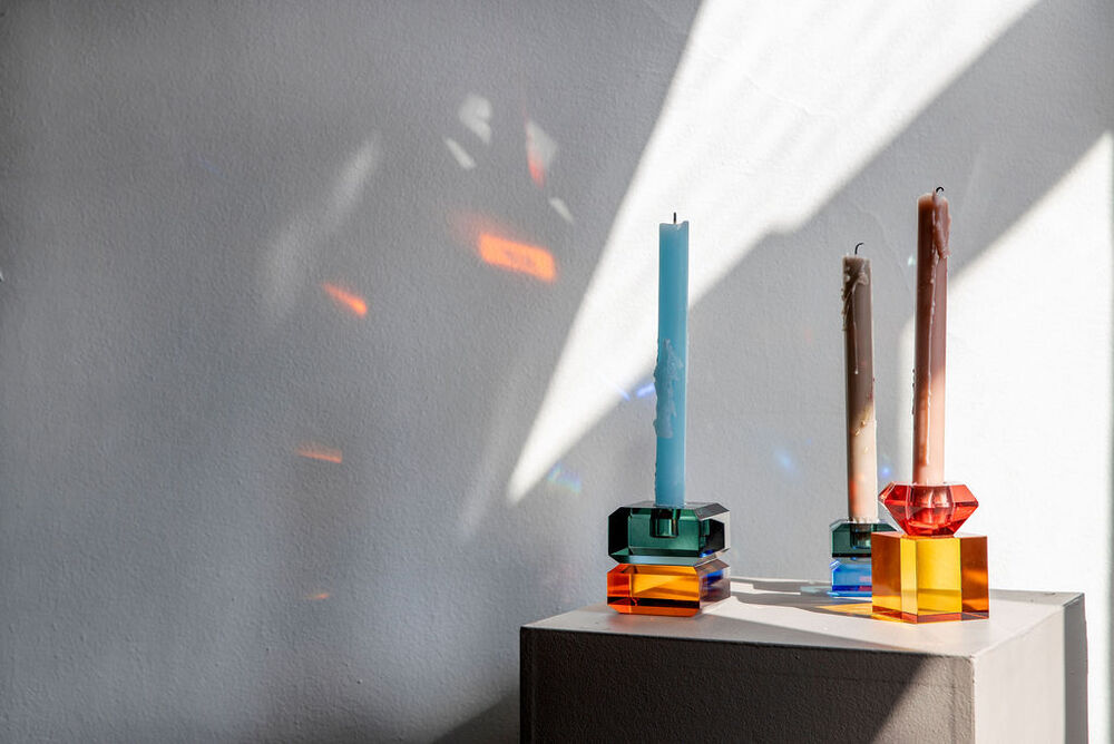 Lysestake av krystallglass som lyser opp i mørket.