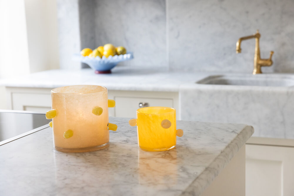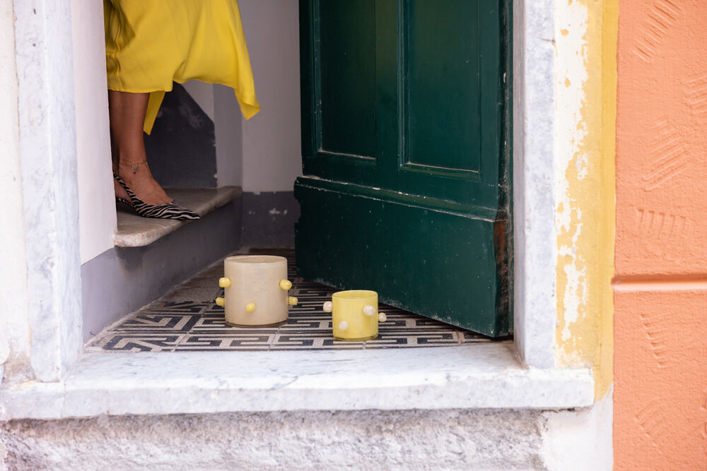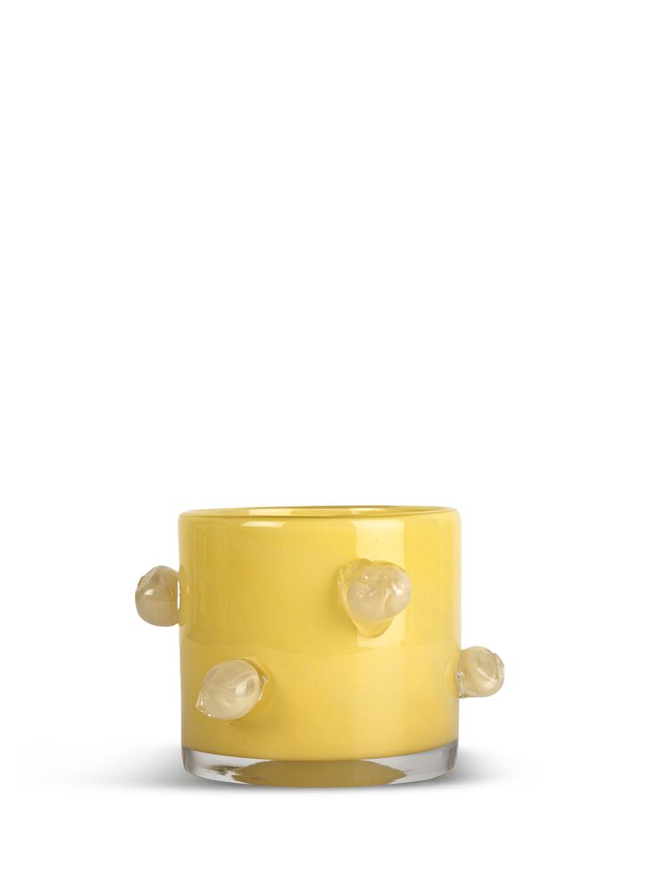 Arlo lyslykt er en leken variant av vår elskede Calore. I likhet med sine søskenbarn er Arlo multifunksjonell – den kan brukes som vase, lysestake eller skål. Den passer inn overalt og er flott i kombinasjon med både Lori- og Lara-lysestakene, der fargene harmonerer. Den beige fargen blandet med sitrongult skaper en uslåelig kombinasjon. Håndlaget, farge- og teksturforskjeller kan forekomme. Design Byon Studio. Leveres i Byon-eske.