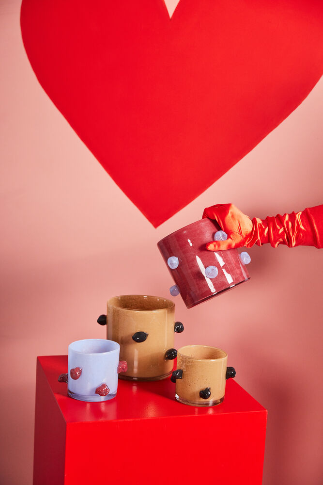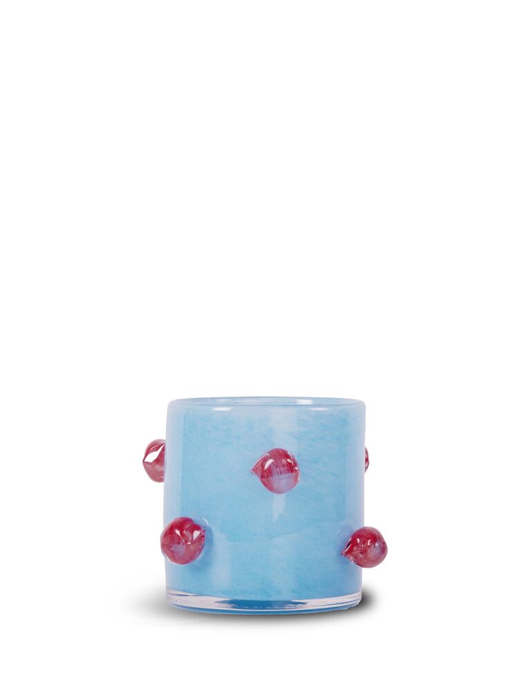 Arlo lyslykt er en leken variant av vår elskede Calore. I likhet med sine søskenbarn, er Arlos multifunksjon identifisert. Bruk som vase, lyslykt eller som skål. Den passer til alt og overalt, og gjerne i kombinasjon med både Lori og Lara lysestaker hvor farger er gjenkjennelige. Fargen er en vakker, skarp lyseblå med burgunderfargede kuler som også er ikonisk for Byon. Håndlaget, farge- og teksturforskjeller kan forekomme. Design Byon Studio. Leveres i Byon boks.