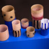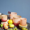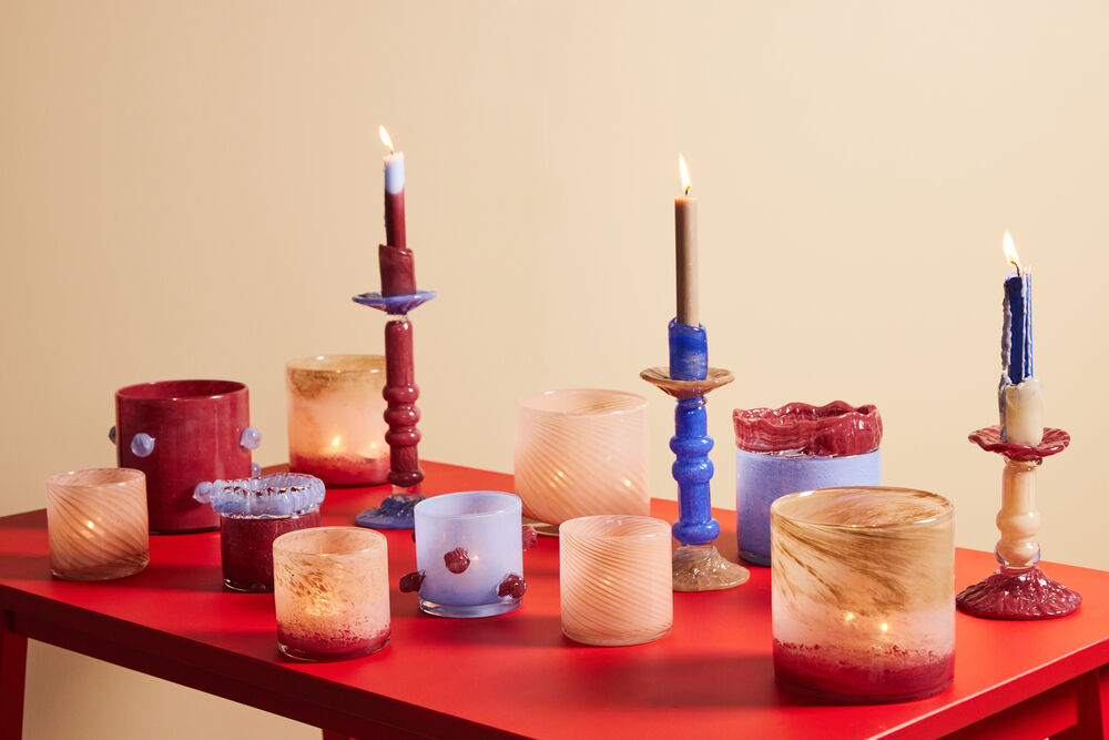 Calore kan brukes som vase, lysestake eller som skål. Miks og match med farger og mønstre. Det går med alt, overalt! Fargen er tåkete rosa med tynne skrå striper. Pakket i en fin Byon-boks.