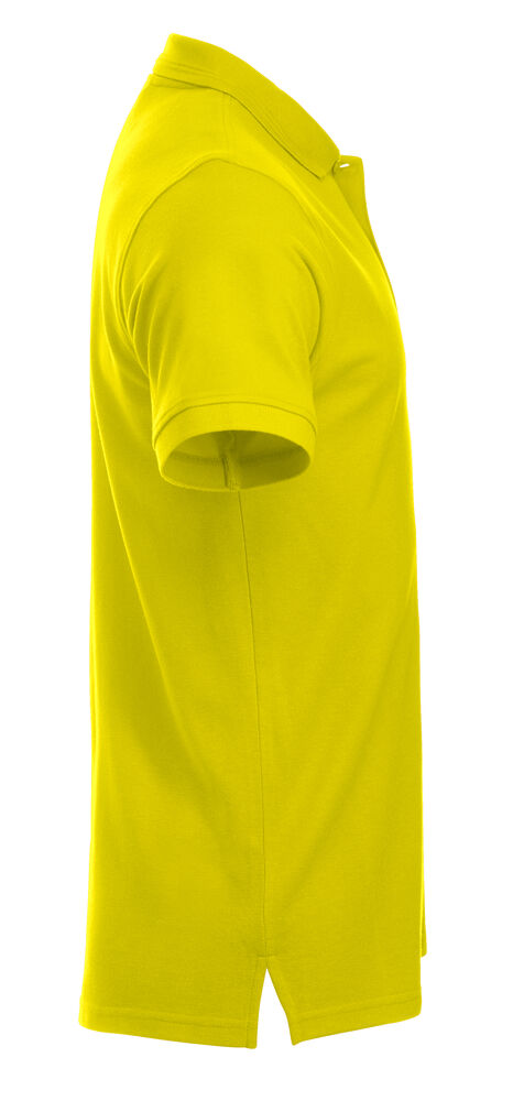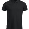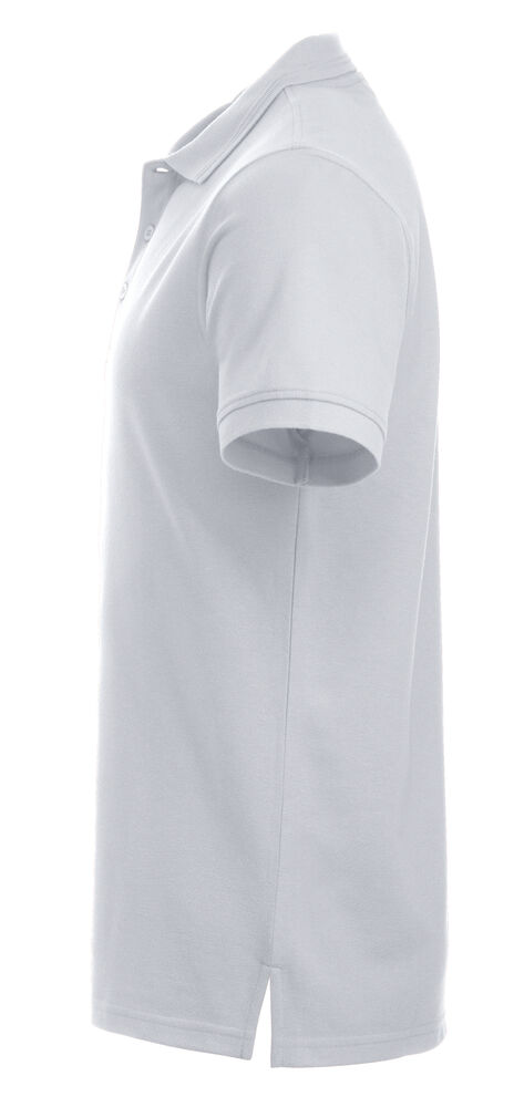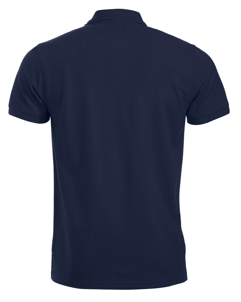Pique med to jaquardstriper på kragen. Knappestolpe med tre knapper som går ton-i-ton og splitt i sidene.