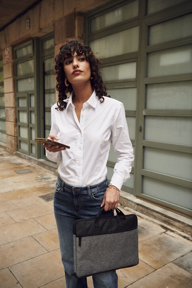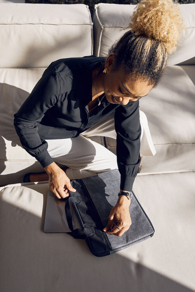 En minimalistisk designet dataveske. Polstret hovedrom og ytterlomme med SBS glidelås. Kommer med solide bærehåntak.