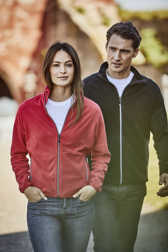 Behagelig microfleece-trøye med raglanerm. Perfekt som lag-2. Hel glidelås og lommer i front med tofarget YKK glidelåser. Framflyttet side- og ermsøm for god passform. Dekorativ strikk i flatlock og ribb i nederkant og ermer. Alt ton-i-ton.