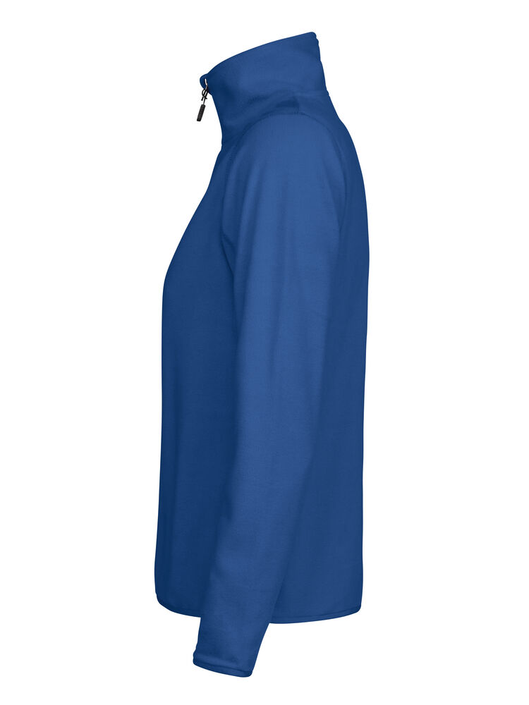 Behagelig microfleece-trøye. Perfekt som lag-2. Kort glidelås med tofarget YKK-glidelås. Dekorativ strikk i flatlock og rib i nederkant og ermene. Alt ton-i-ton.