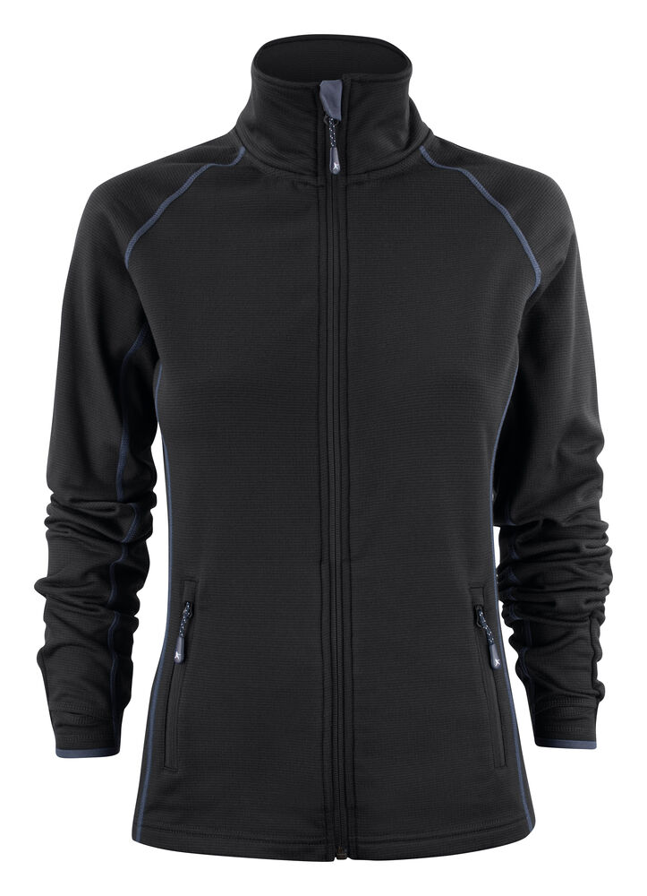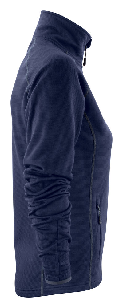 Glatt fleecejakke. Materialet er i "vaffelstrikk" for god isolasjon og fukttransport. Mesh-fôret lomme som også bidrar til ekstra ventilasjon. Vindbeskyttelse bak hovedglidelåsen. Tommelåpning i ermavslutning.