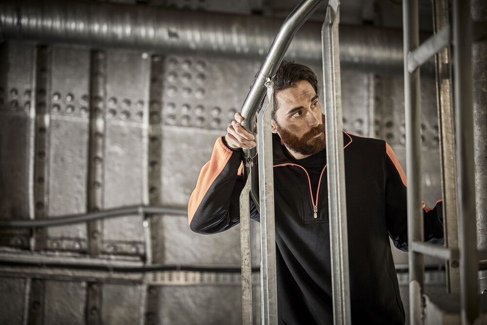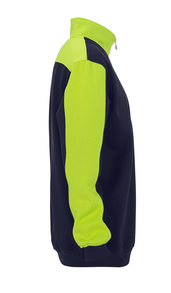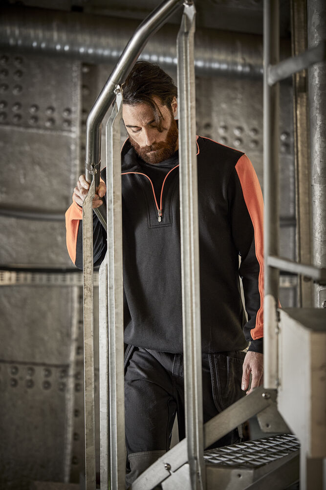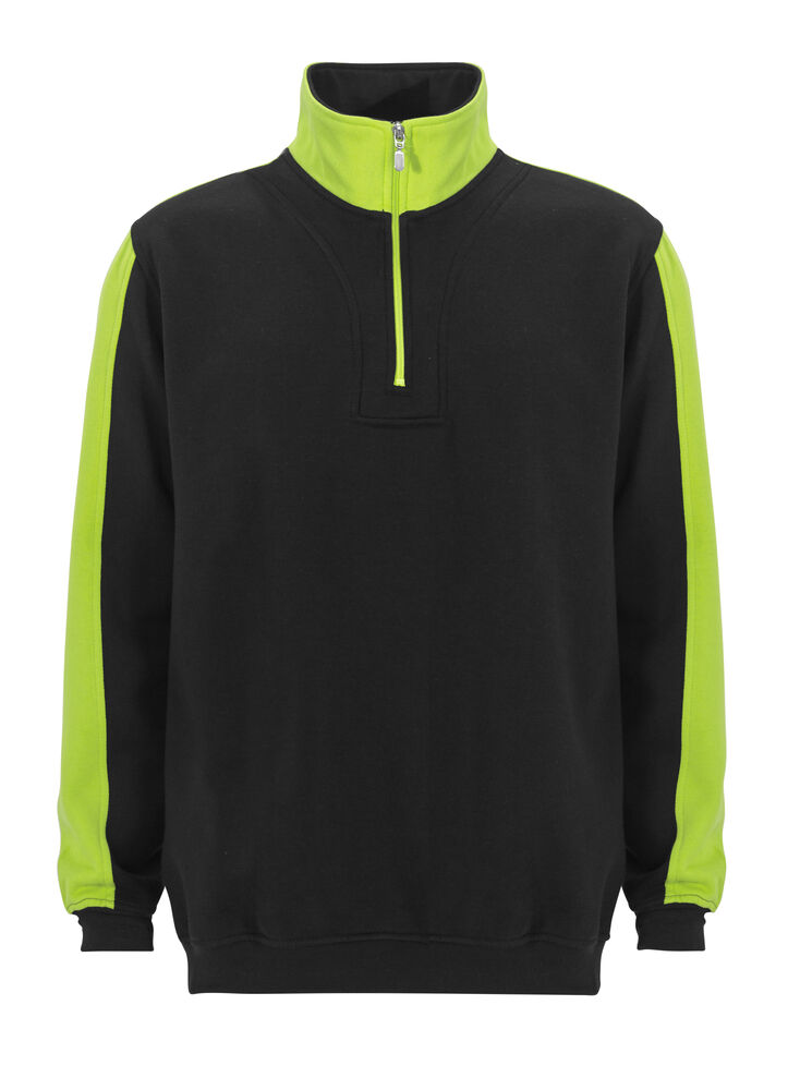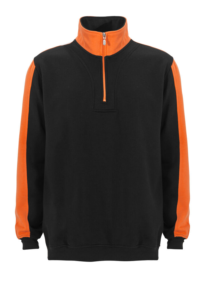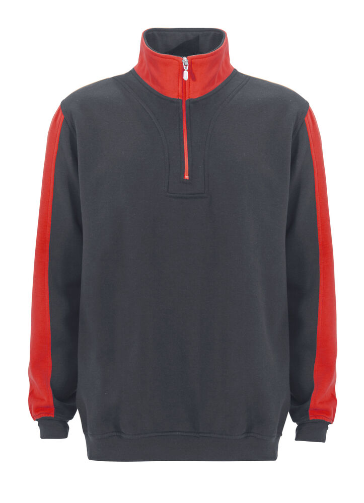 Genser med halfzip. Kontrastfarge på ermer, krage og skulderparti. Kontrastfarget glidelås.