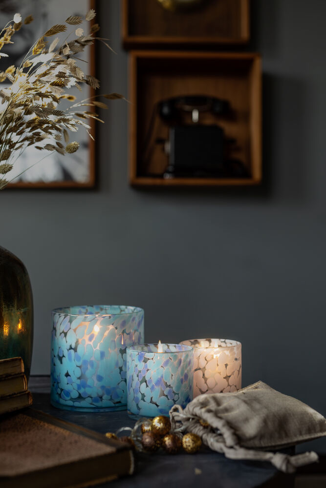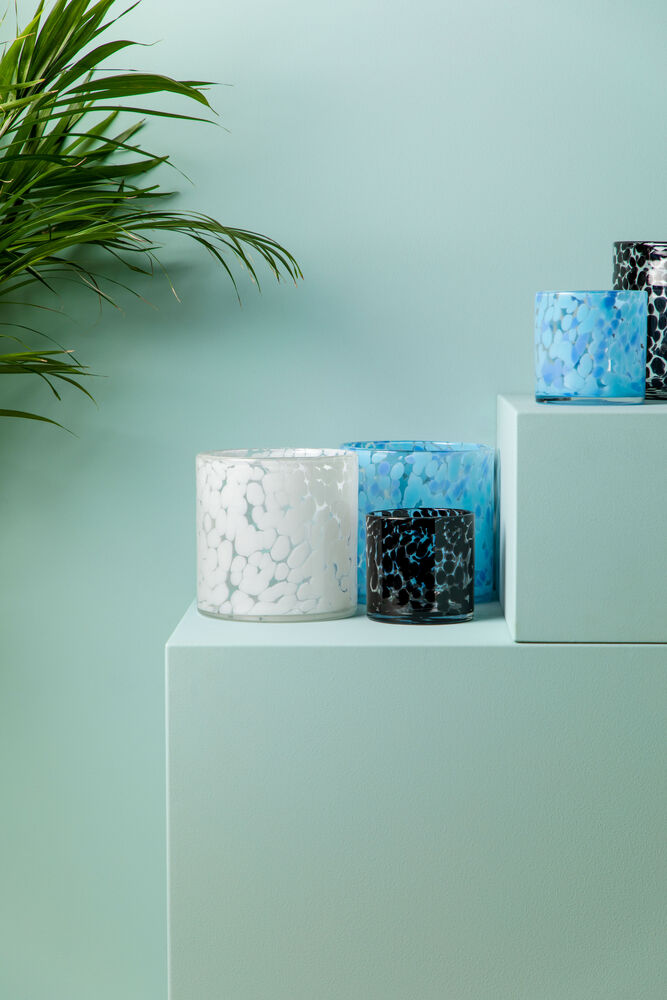 Håndlaget lyslykt som også kan brukes som krukke. Hver lykt er unik med sitt flekkete mønster. Lyktene sprer et vakkert lys og skaper en koselig atmosfære. Tilgjengelig i tre forskjellige farger og ser flott ut i kombinasjon med den mindre varianten 411245. Hver lyslykt/krukke er unik og kan variere noe i farge og størrelse.