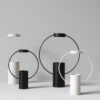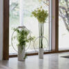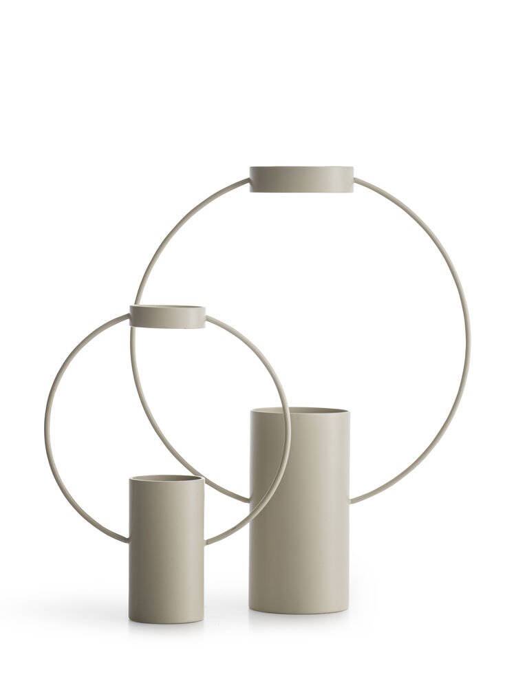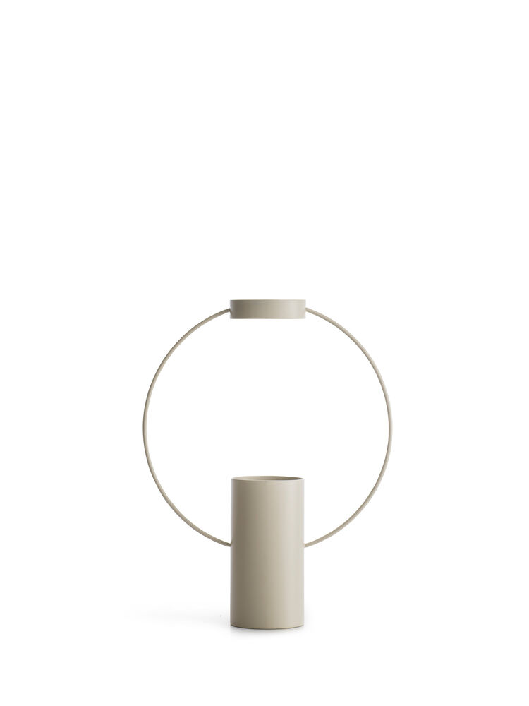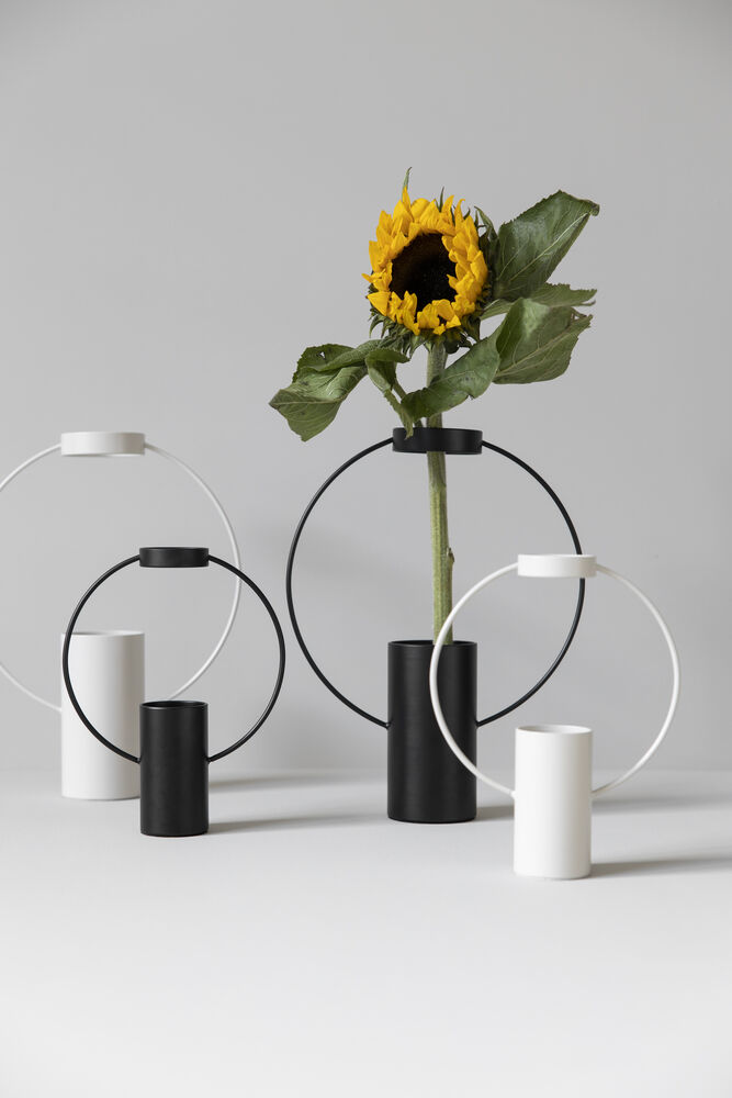 Elegant, moderne og stilig vase i pulverlakkert metall. Designet av Pascal Charmolu. Vasen fungerer like bra som en innredningsdetalj som en praktisk vase hvor den øverste delen holder blomsten på plass. Vasen er kommer i to ulike farger og størrelser.