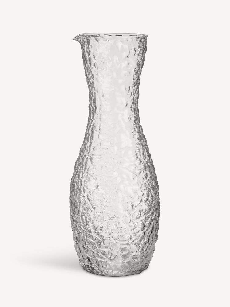 Moss-serien fra Kosta Boda er skapt av gjenbrukte gamle støpeformer fra Kosta Glassverk som er skåret ut for hånd for å skape en unik, bølgende og levende overflate i glasset. Karaffelen er nå laget av klart glass og tilfører en dimensjon av liv når vann, juice eller vin bobler opp. Laget i Kosta med design av Åsa Jungnelius.