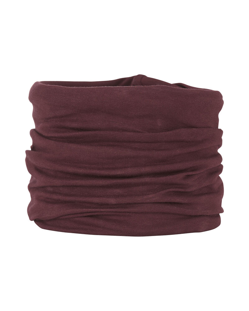 Neck tube i single jersey, diskret søm midt bak og ton-i-ton dekorative sømmer. Glattstrikket for å forenkle merking.