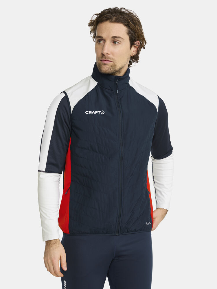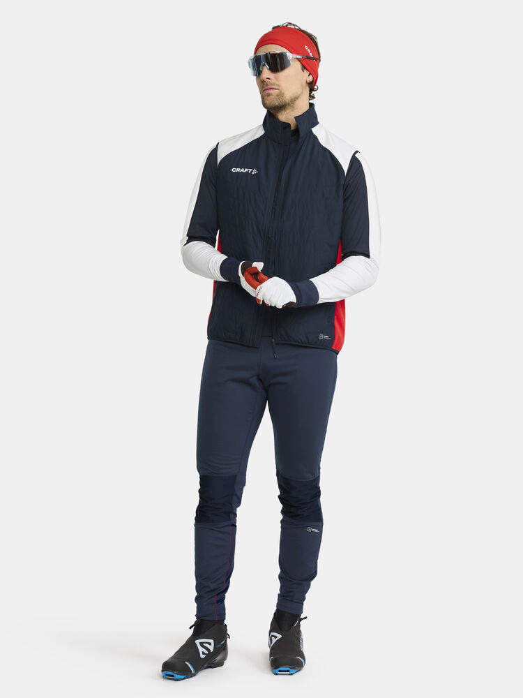 NOR ADV Nordic Ski Club Vest er en tynn, vattert vest for langrenn i kalde forhold. Vesten har en kviltet og vattert front, vind- og vanntett 3-lags materiale på skuldrene og sidene, samt børstet trikot i ryggen som gir effektiv temperaturregulering.