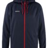 Myk og funksjonell hettejakke med stretch. Produsert av resirkulert polyester. To lommer i front.