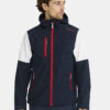 Softshelljakke med børstet innside. 3-lags vind- og vannavstøtende materiale. Jakken har elastisk snøring i hetten og midjen, samt kontrastfargede glidelåser i front og på lommene. To lommer i front. Herrejakken har også brystlomme med glidelås.