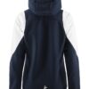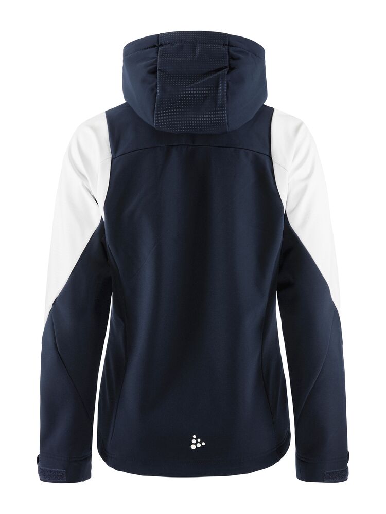 Softshelljakke med børstet innside. 3-lags vind- og vannavstøtende materiale. Jakken har elastisk snøring i hetten og midjen, samt kontrastfargede glidelåser i front og på lommene. To lommer i front.