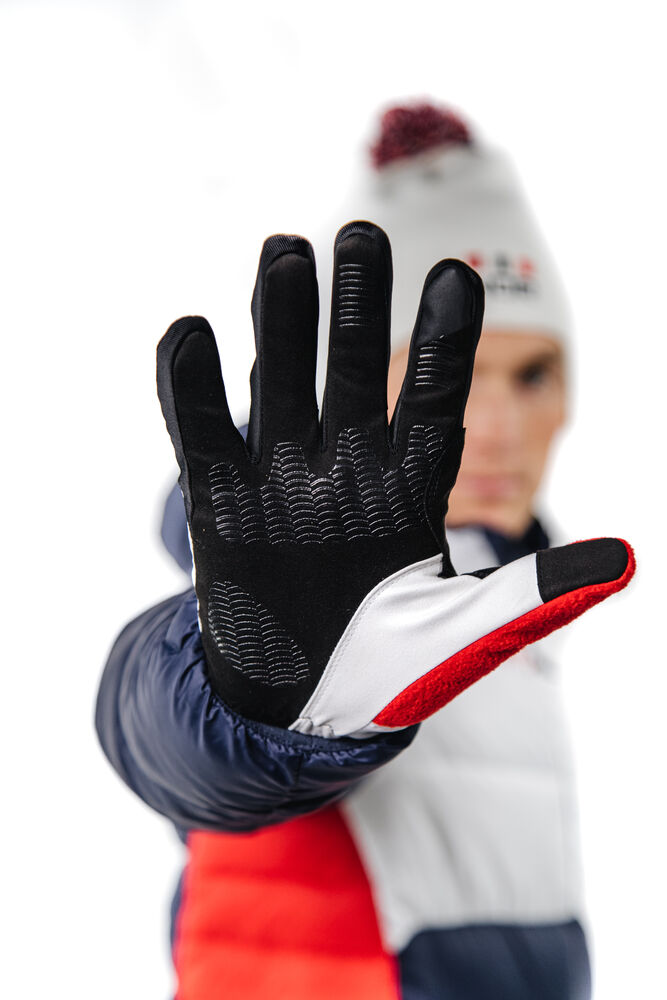 Denne teknisk avanserte langrennshansken har en vindavvisende overdel, supertett passform og meget godt grep som bidrar til maksimal kraftoverføring. Elastisk og svært tynn trikot gir en tettsittende passform rundt håndleddet, mens CLARINO ™ kunstskinn og silikonprint i håndflaten gir optimalt grep og ekstra slitestyrke.