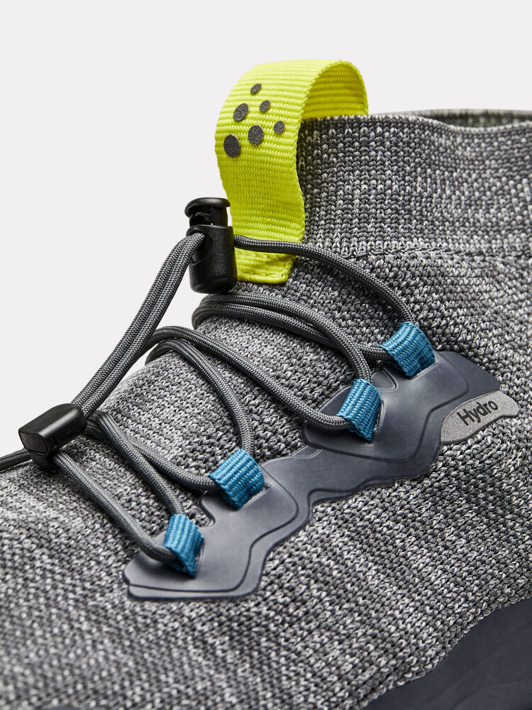 Nordic Fuseknit Hydro Mid er en terrengløpesko med et praktisk høyt skaft som gir beskyttelse og holdbarhet for tøffe terrengoverflater, samtidig som den ikke går på bekostning av komfort når du er på veien.