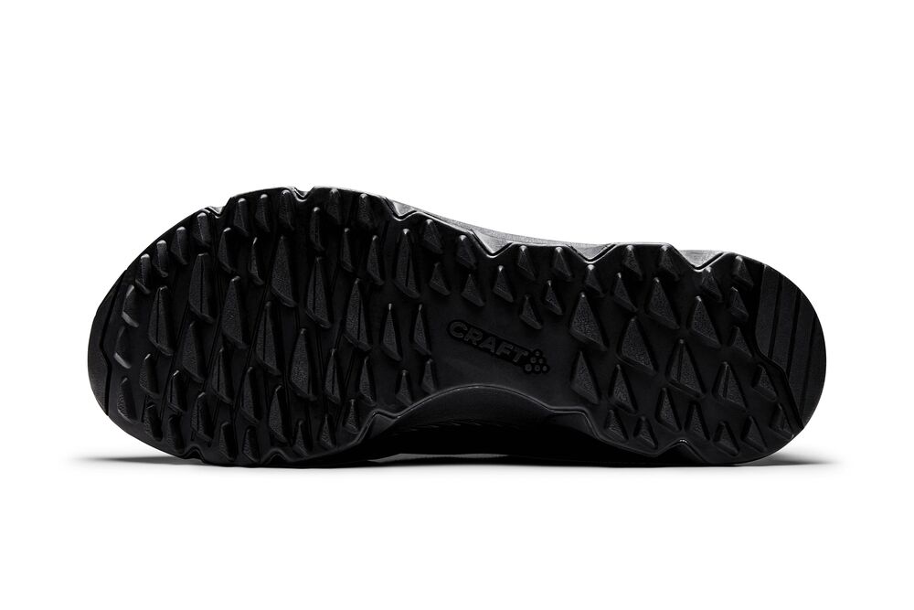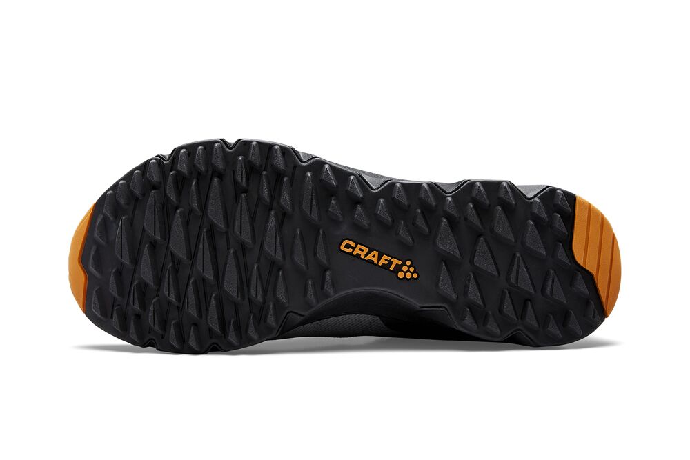 • Organisk strukturert trekantet mønster på yttersålen gir trekkraft og fleksibilitet mens hælputen tillater avkobling for vektfordeling gjennom stegene.