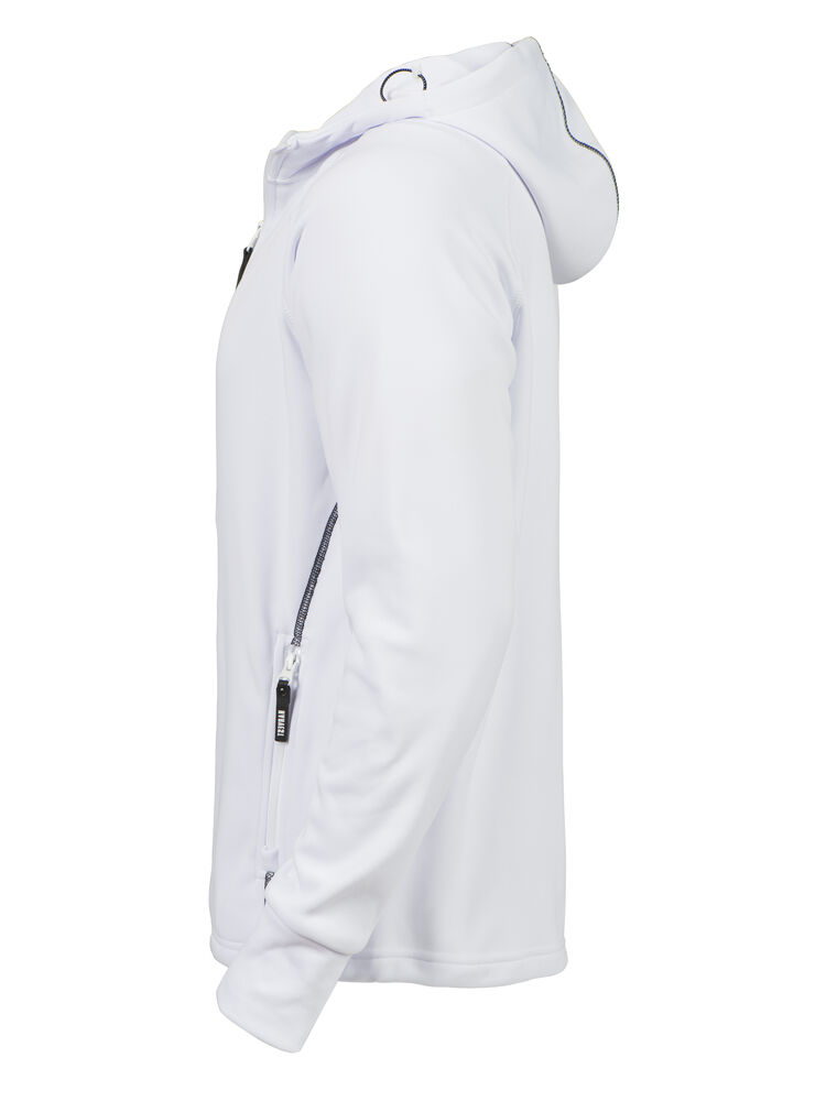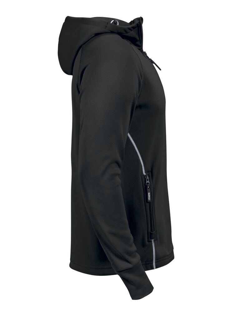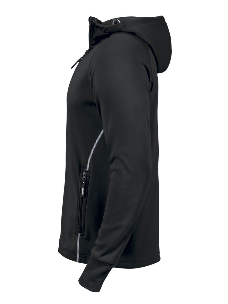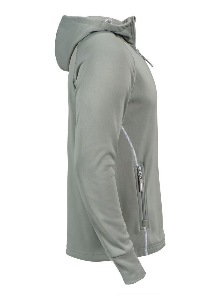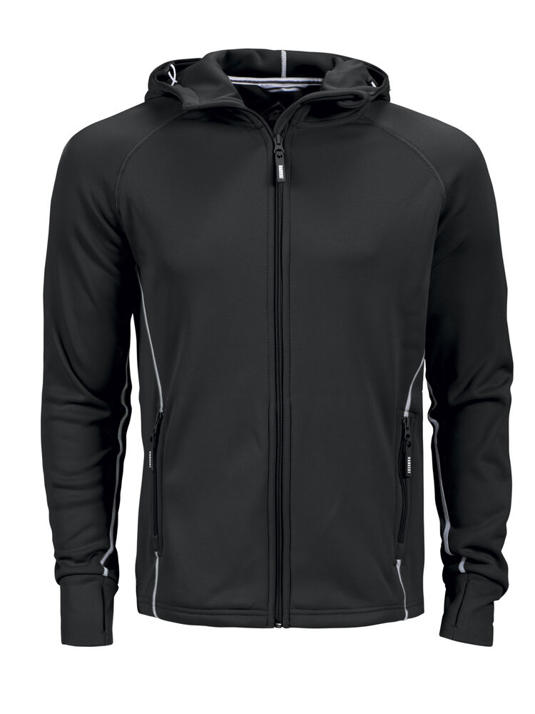 Fleecejakke med god pillingmotstand. Behagelig, moderne og sportslig design. Hette, kontrast på flatlock-søm og tommelgrep på mansjett. Elastisk snor i hette og nederkant.