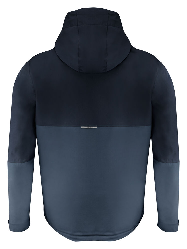 Funksjonell, tofarget skalljakke med teipede sømmer. Vanntett glidelås i front og reverserte nylonglidelåser på sidelommene. Borrelåsjustering i ermeavslutningene. Meshfôr med innerlomme på venstre side. Broderingslomme med glidelås. Reflekterende merke midt på ryggen. Justerbar, elastisk snor i hette og nederkant.