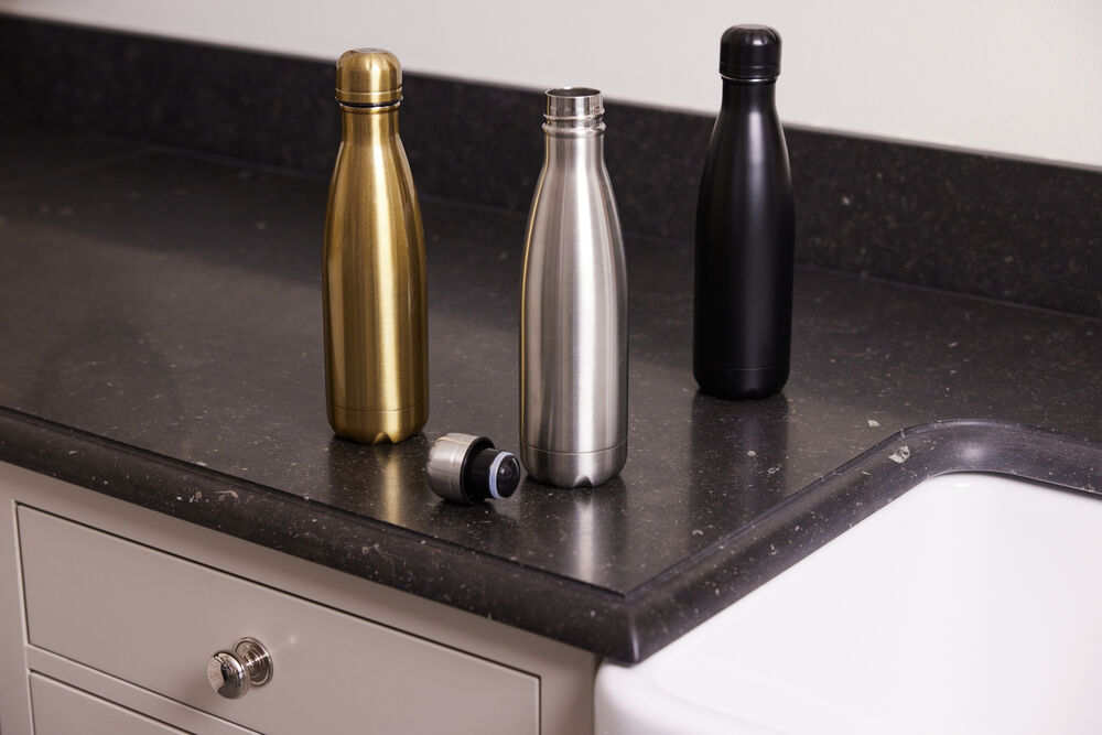 Stålflaske med doble vegger og vakuumkonstruksjon. Holder drikken varm i 8 timer eller kald i 16 timer.
