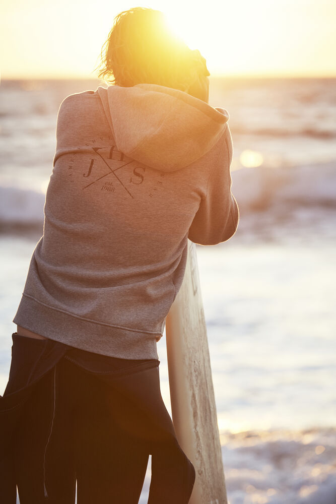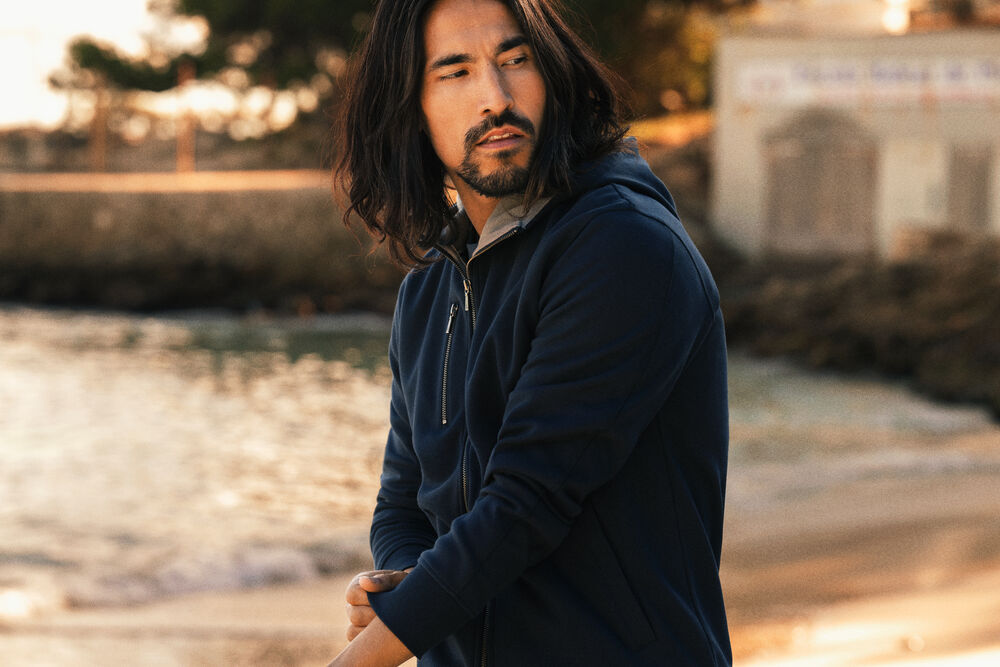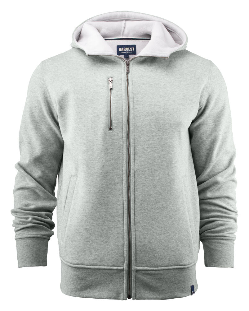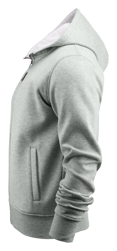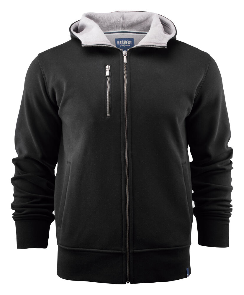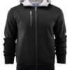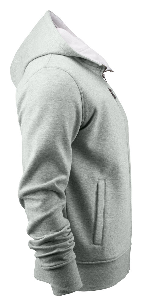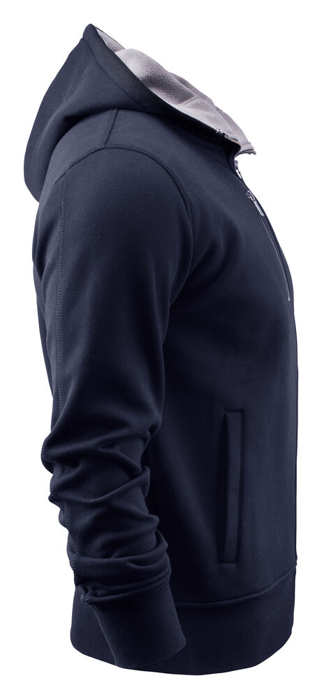 Hettejakke i double face materiale. Fleece på innsiden, bomull på utsiden. Metallglidelås i front og i lommen på brystet. Ribb i nederkant og i ermavslutning.
