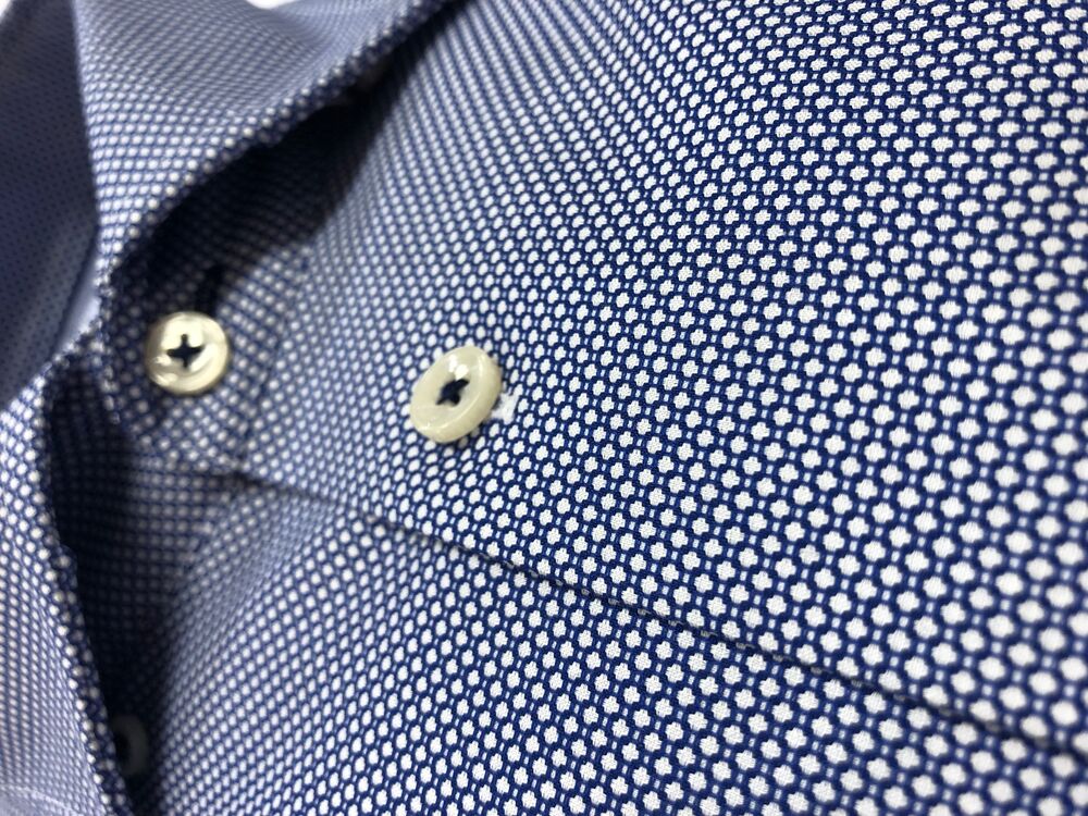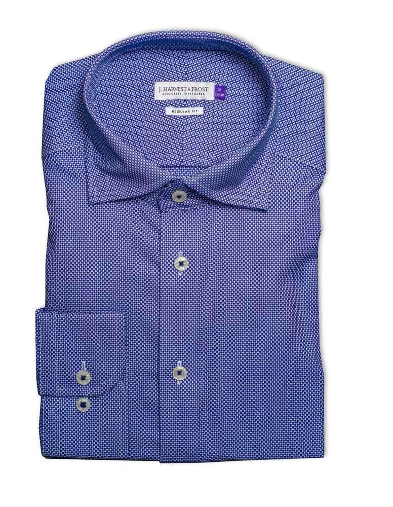 Purple Bow 48 er en blå/hvitprikket skjorte med dobbelt jacquardstoff og et pent, moderne mikromønster. Skjorten passer svært godt i kombinasjon med en ensfarget dress, men er også et godt valg til jeans i hverdagen.