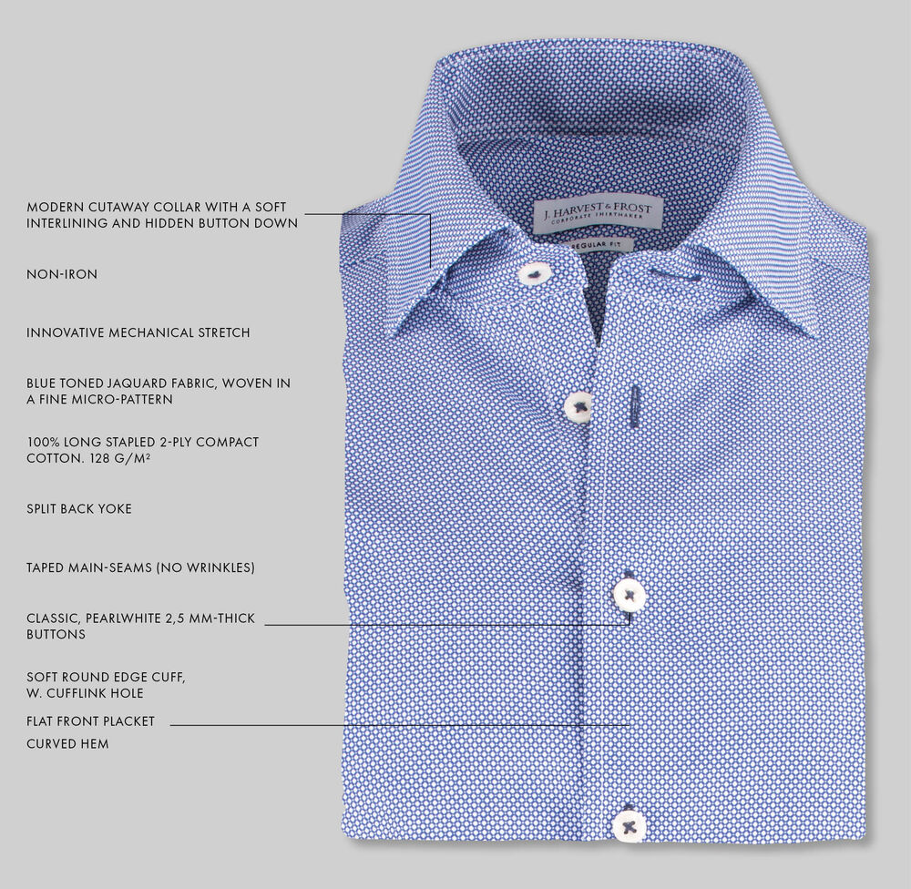 Vårt nyutviklede stoff er laget med mekanisk stretch som gir skjorten svært god komfort.