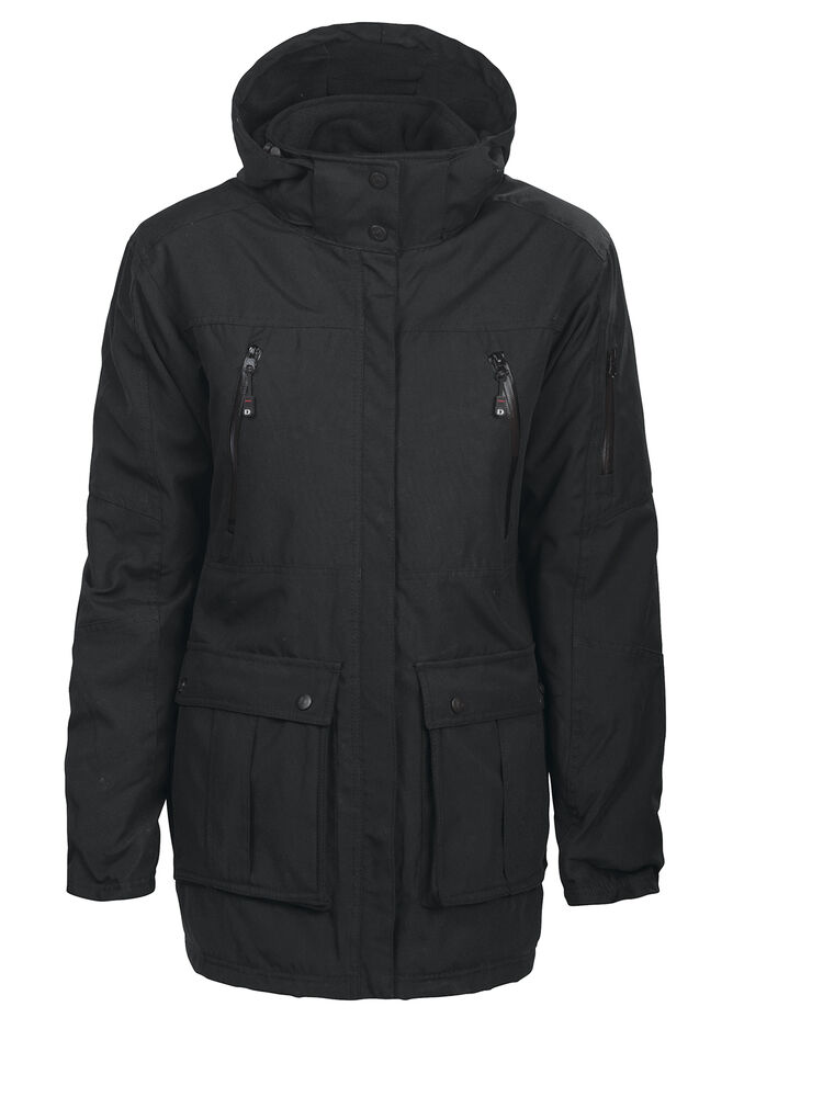 Fôret jakke i parkasmodell. Materialets unike egenskap er å holde en jevn temperatur på 32 grader! Jakken er vind- og vannavstøtende og har pustende egenskaper. Store ytterlommer med sidelommer og innerlomme. To brystlommer på skrå, lomme på erm med vanntett glidelås. Skjulte mansjetter i elastisk ribb på ermene, elastisk snøring med stopper i nederkant. Avtakbar og regulerbar hette. Finnes i dame- og herremodell.