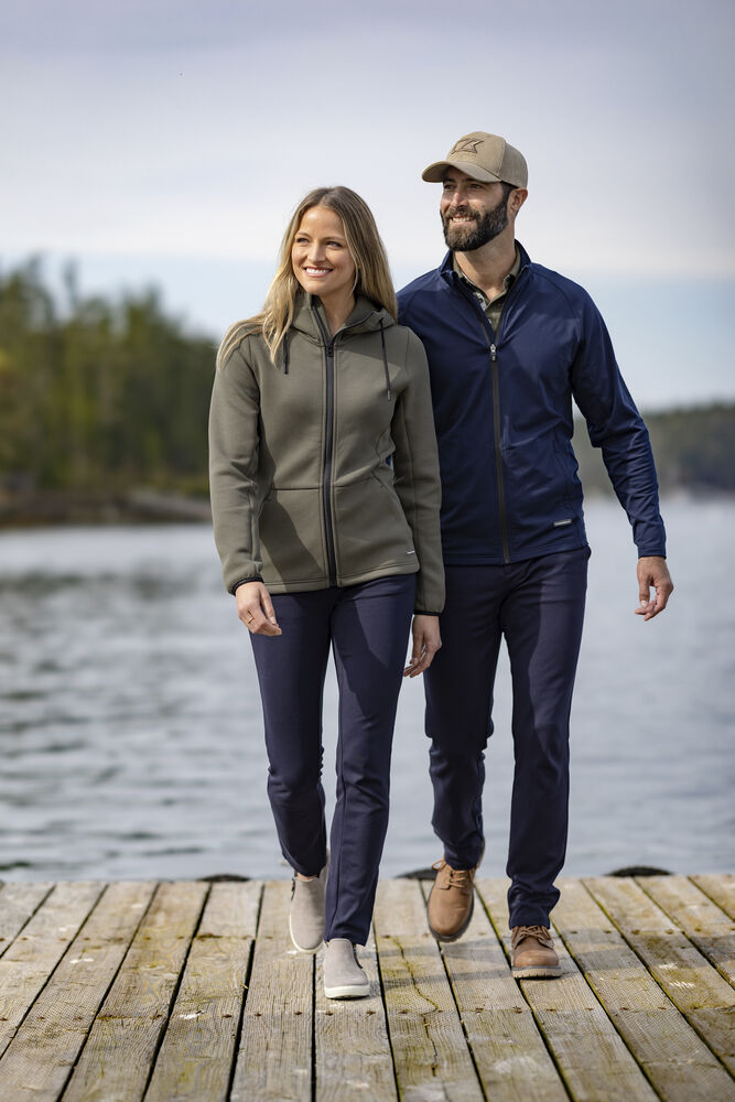 Vår ikoniske Pemberton-hettegenser i behagelig, elastisk, dobbeltstrikket lettvektsmateriale er et perfekt helårsplagg. Det tekniske materialet er laget av opptil 70 % resirkulert polyester. Den høye kragen beskytter mot kaldt vind, og hetten er enkel å justere med snorer. Genseren har to lommer med glidelås i front. CUTTER & BUCK-logoen er brodert langs ytterkanten av hetten.