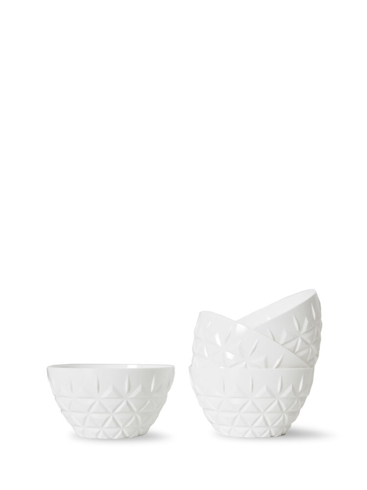En favorittskål av akrylplast, i en luksuriøs eggeskallhvit farge med stilig krystallmønster. Skålen er både funksjonell og vakker på samme tid. Perfekt på stranden, i skogen, båten og vinterhagen. Finnes også i klar plast (artikkel 5017338). Leveres i 4-pakning.