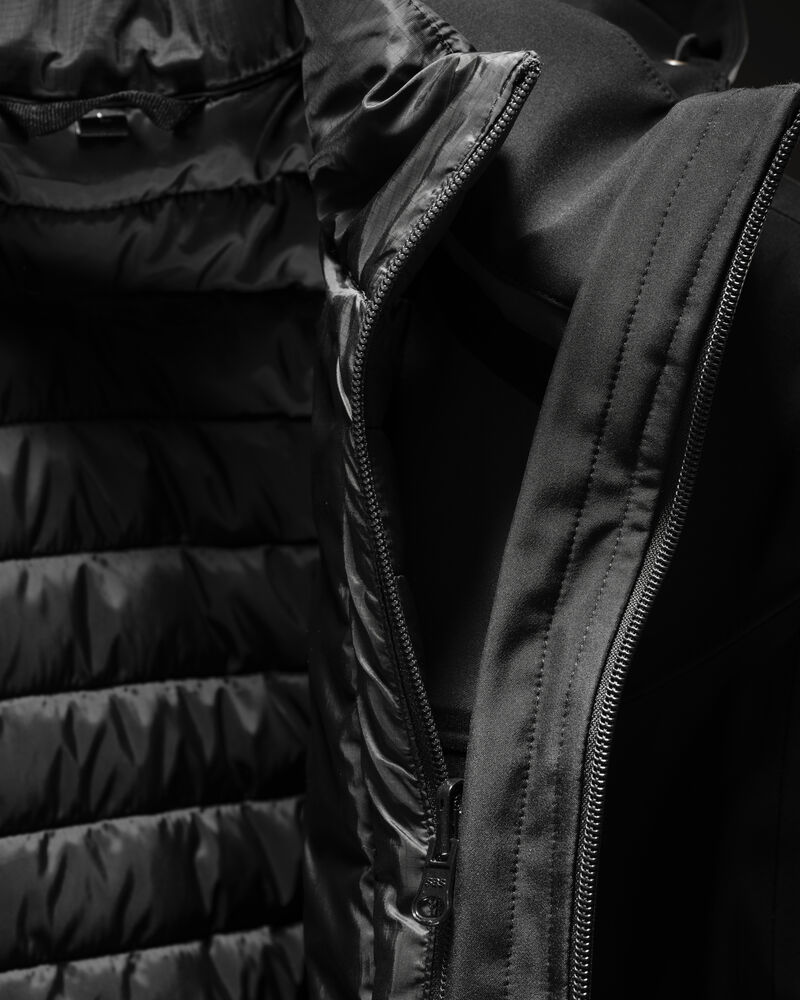 Pinnacles er en 3-i-1 multifunksjonell ytterjakke designet for maksimal beskyttelse og komfort selv under våte forhold. Ytterjakken er laget av resirkulert polyester og har teipede sømmer og vanntette glidelåser som sørger for god vanntetthet. Side- og brystlommer med glidelås gir sikker oppbevaring. Justerbare ermer og nederkant – med borrelås på mansjettene og elastisk snøring i nederkant – gir perfekt passform. Hetten er både justerbar og avtagbar, og hakebeskyttelsen gir ekstra komfort. Innerjakken er en avtagbar, vattert jakke i resirkulert polyamid som gir ekstra varme. To lommer med glidelås på sidene sørger for sikker oppbevaring og hakebeskyttelse. Kombinasjonen av en funksjonell regnjakke og en vattert innerjakke gir et allsidig og beskyttende plagg, perfekt for ulike værforhold. Pakket i en biobasert, komposterbar pose.