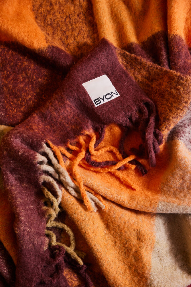 Ruten som vi elsker har tatt sin plass i dette pleddet som vi kanskje elsker enda mer. Check-teppet er som en stor, varm klem som du aldri vil gi slipp på. Tilgjengelig i to fargekombinasjoner: blandet beige og blandet oransje. Størrelse 150×125 cm. Leveres med hangtag