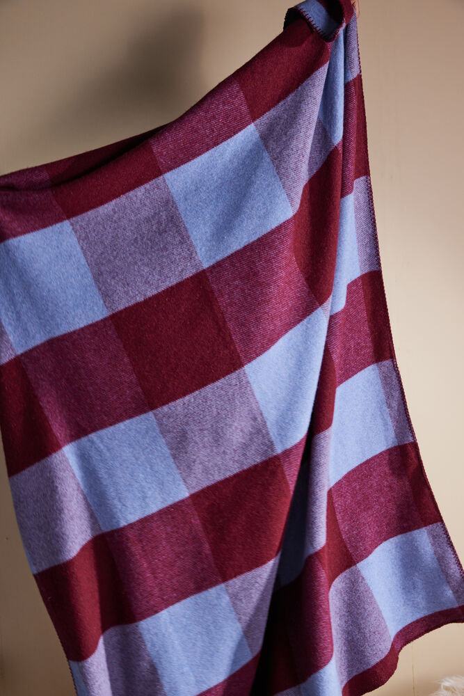 Pleddet Embrace er designet for å omfavne og ta vare på deg – akkurat som navnet antyder. Det er det perfekte tilskuddet til sofaen eller sengen din. I tillegg til å være varmt og behagelig, har teppet et klassisk rutemønster og kommer i spennende fargekombinasjoner. Blått og burgunder er to farger som er enkle å like og lett passer inn i enhver innredning. En perfekt gave til noen du liker, eller til deg selv. Materialet er en myk merinoull 270 gsm (80 % merinoull, 20 % nylon). Størrelse 130×200 cm. Design Byon Studio.