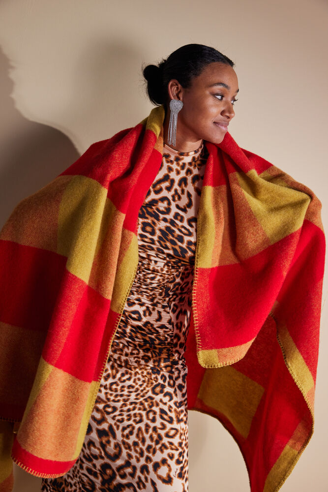 Pleddet Embrace er designet for å omfavne og ta vare på deg – akkurat som navnet antyder. Det er det perfekte tilskuddet til sofaen eller sengen din. I tillegg til å være varmt og behagelig, har teppet et klassisk rutemønster og kommer i spennende fargekombinasjoner. Den selvsikre kombinasjonen av rødt og dijongult, setter stilen for et bevisst hjem og trigger det kreative. En perfekt gave til noen du liker, eller til deg selv. Materialet er en myk merinoull 270 gsm (80 % merinoull, 20 % nylon). Størrelse 130×200 cm. Design Byon Studio.