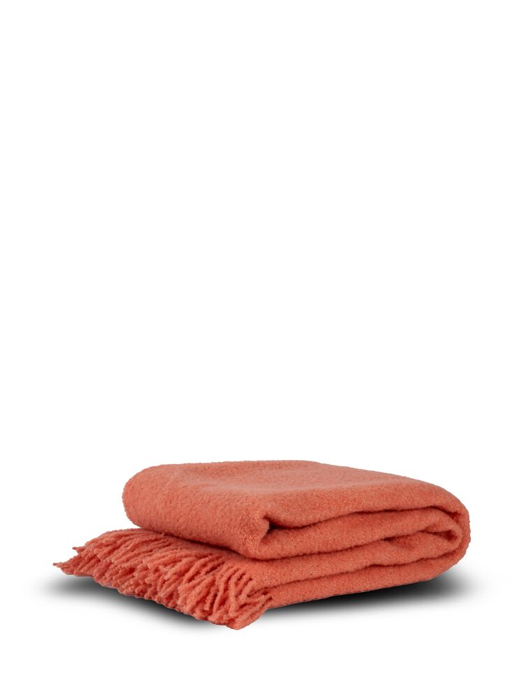 Med en utrolig luksuriøs følelse passer dette boucléteppet inn i ethvert hjem, enten du er innendørs eller utendørs. Varm og behagelig, men også vakker på sofaryggen med sine frynser. Teppet er laget av bouclé-garn som er et garn med små eller store løkker, og inneholder 80 % ull og 20 % polyester. Løkkene i ull gir ekstra volum til garnet og skaper et ekstra ullent og varmt produkt uten at det går på bekostning av lettheten. Tilgjengelig i en selvsikker blåfarge som piffer opp aller rom, eller i en varm lakserosa tone som tilpasser seg omgivelsene. Begge toner bringer tankene til havets farger. Sjenerøs størrelse 130×170 cm. Kan kun renses.