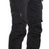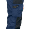 Lettstelt polyester/bomull som holder på fargen og formen. Hengelommer med ekstra rom og en ekstra lomme med glidelås. Baklommer med klaff og borrelås. Benlomme med ekstra rom og klaff med borrelås. Tommestokklomme med knivholder. Forsterkning i hengelommer og på knebeskyttelseslommer. C42-64 kan forlenges med 5 cm ved at kanten brettes ned.