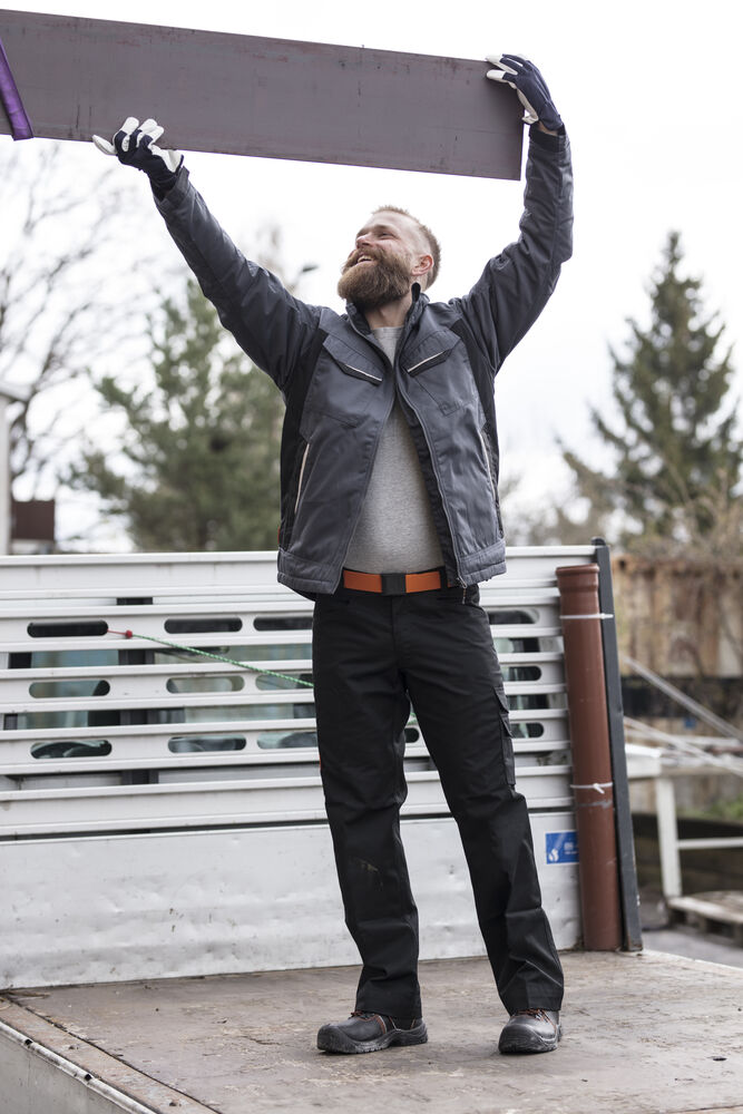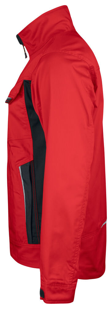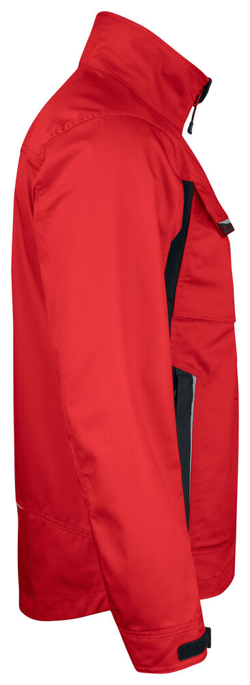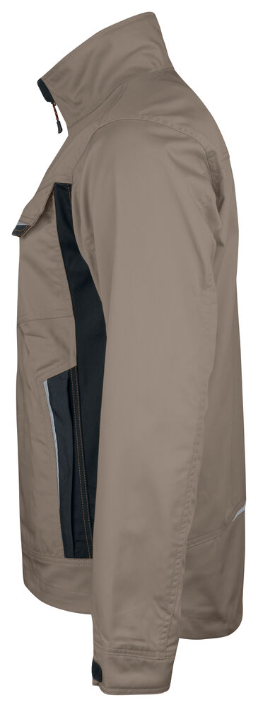 Servicejakke i lettstelt polyester/bomull. To brystlommer med borrelås, D-ring i venstre brystlomme for ID-kort. Børstet myk polyester i kragen. Frontlommer med glidelås. Tre innerlommer; to åpne og én for mobiltelefon. Regulerbar mansjett. Reflekser foran på lommeklaff. Forlenget rygg med refleksbise.