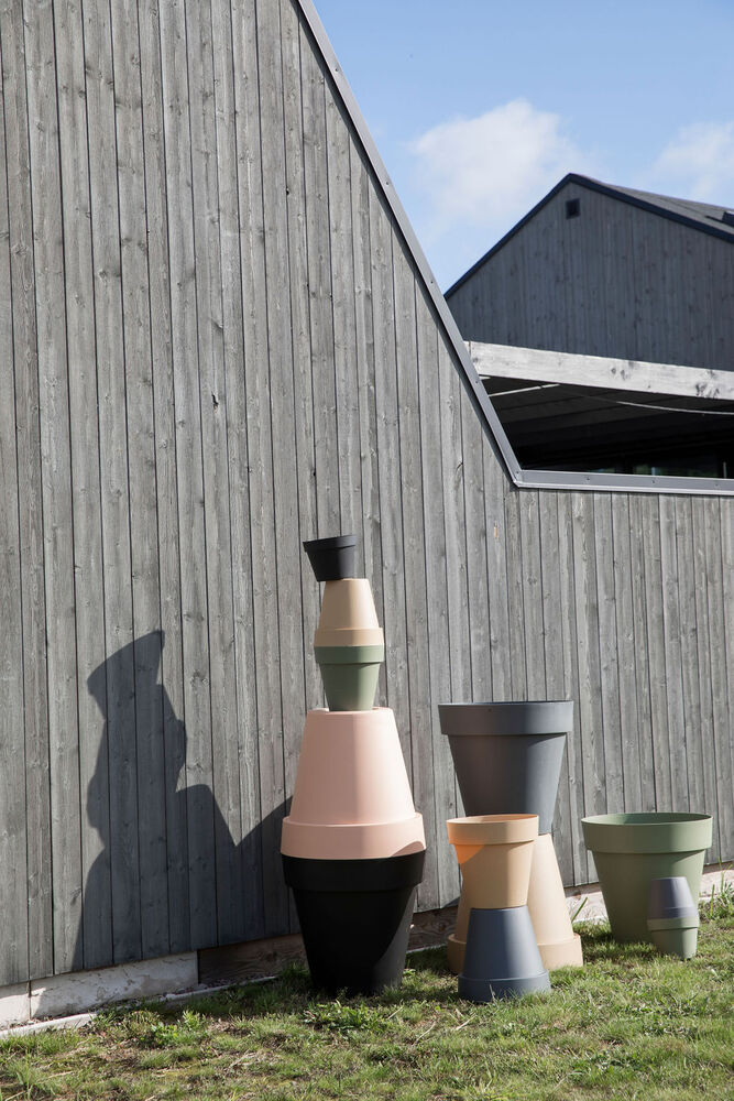 Potte i pigmentert resirkulert plast for både innendørs og utendørs bruk. Tilgjengelig i flere farger og størrelser.