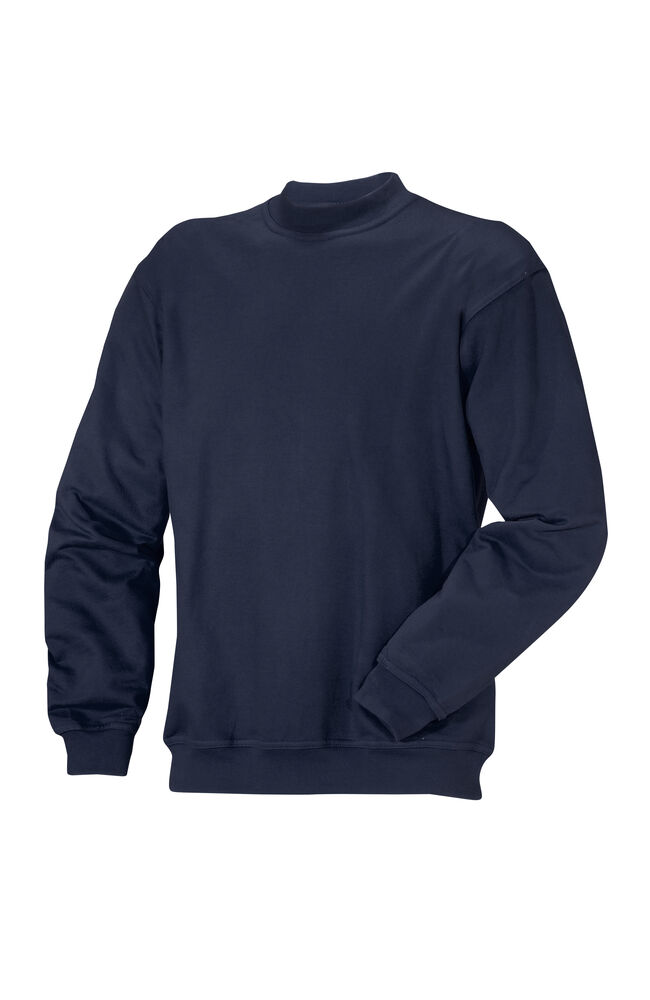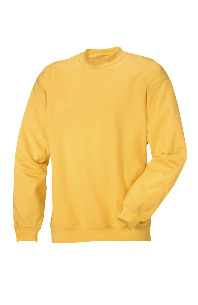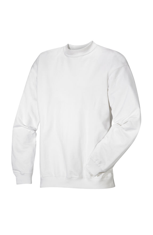 Rundhalset genser i 100% forkrympet bomull. Halvmåneforsterkning i nakke, strikk i nederkant og ermavslutning. Normal passform.