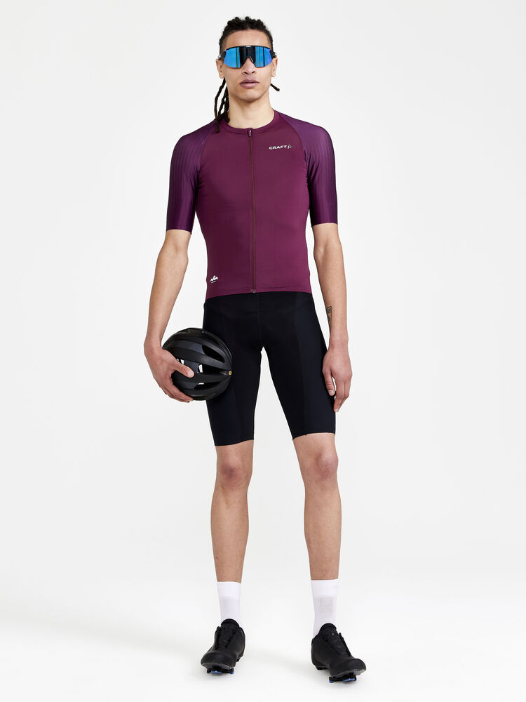 Sykkeltrøyen er laget av et lett, svært funksjonelt materiale og har sonetilpassede paneler med ulike strukturer for å gi minimal luftmotstand og maksimal hastighet. Trøyen har også et perforert panel i ryggen som gir ekstra ventilasjon, samt ekstra lange ermer med råkuttede ermavslutninger.