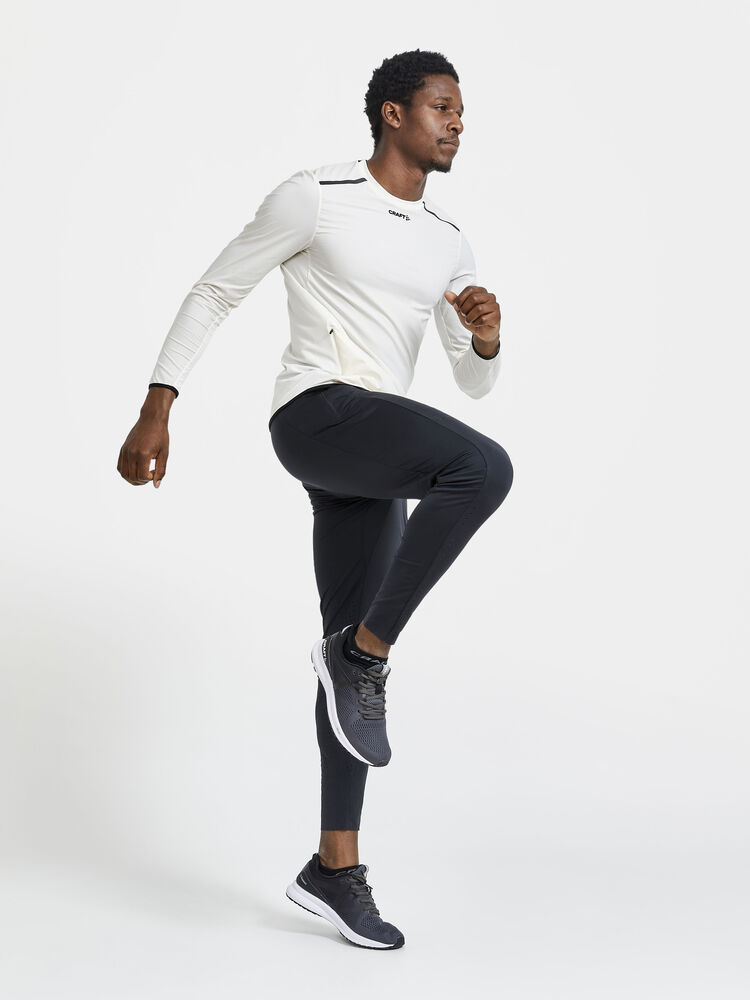 Denne teknisk avanserte løpebuksen er laget av myk, lett og resirkulert polyamidtrikot som gir effektiv fukttransport under intens trening. Buksen har også perforeringer fra knær til ankler for å gi ekstra ventilasjon, samt en justerbar snor i livet for å sikre perfekt passform. Buksen har en løs passform over lårene, men blir smalere og mer tettsittende under knærne.